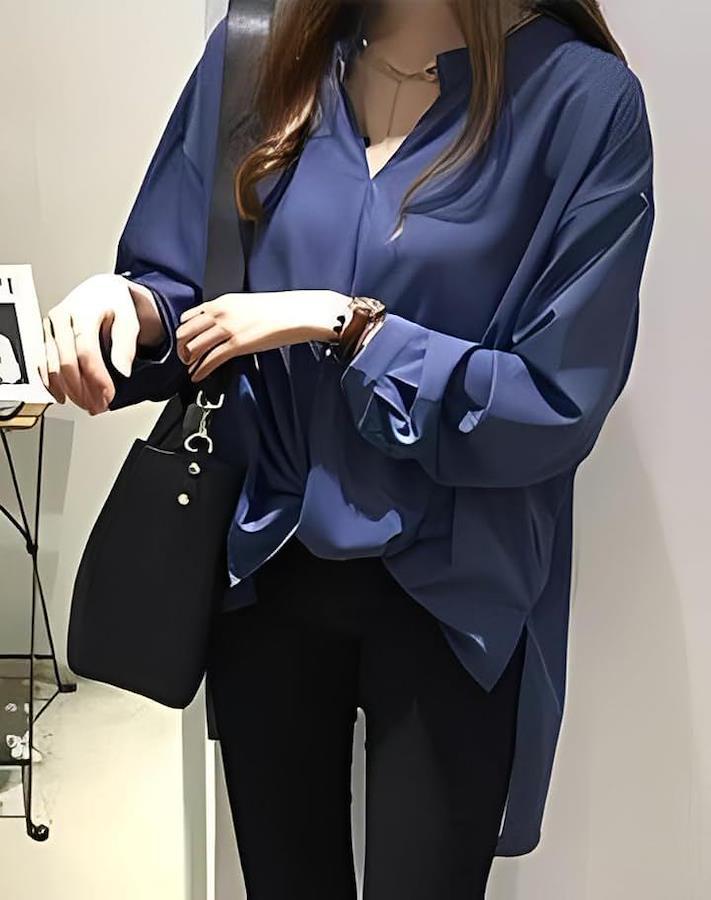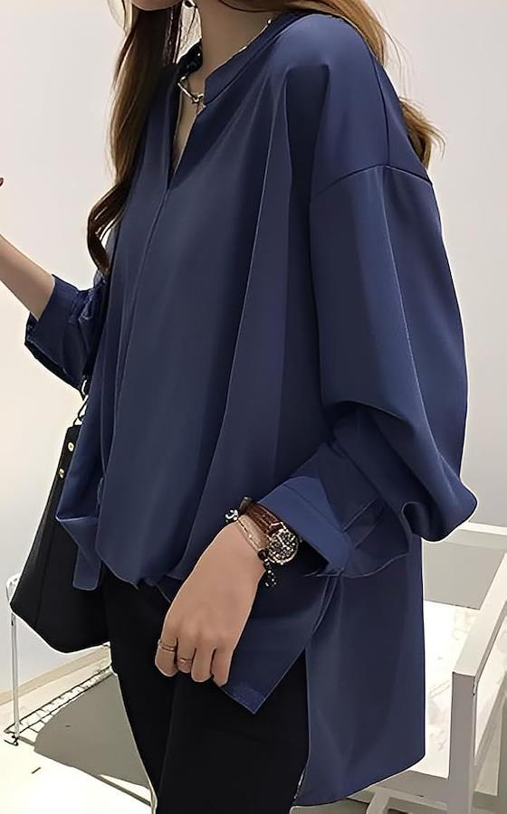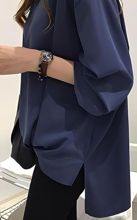 *女性らしさ漂うエレガントさ満載のスキッパーシャツ。