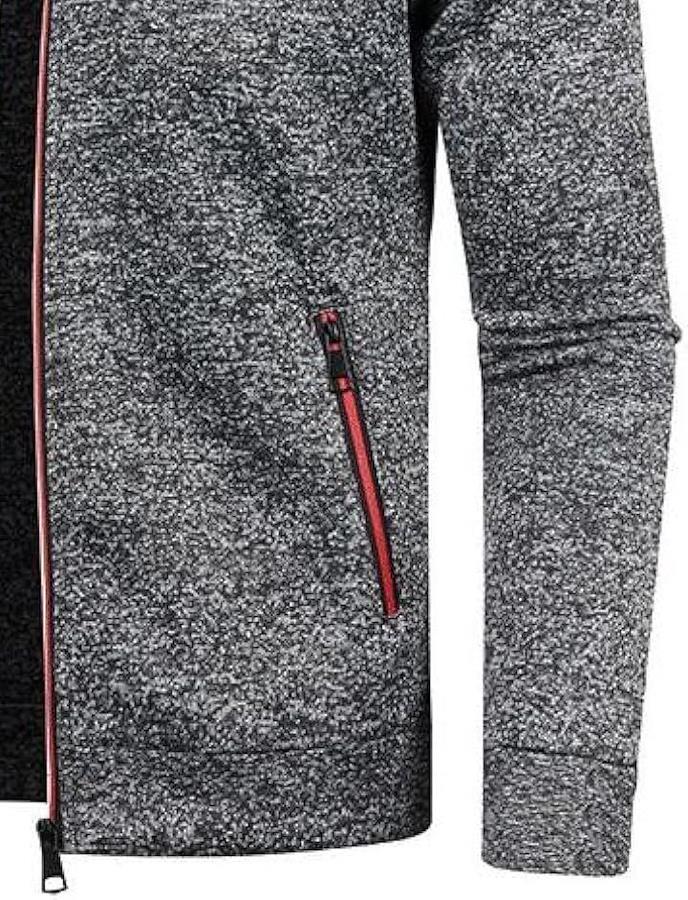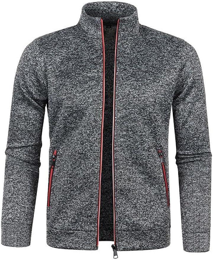 Aspersio Men's Full-Zip Fleece Jacket, Hoodless, Long Sleeve, Street Style, Stand-Up Collar, Lightweight, Zip-Up, Fleece Lining, High Neck, Perfect for Commuting, School, or Hiking