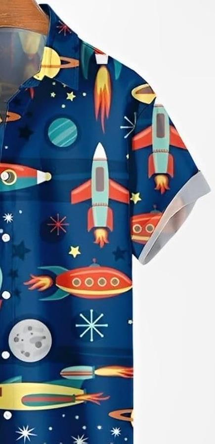 *大胆なファッションを楽しめる宇宙模様の半袖シャツ。