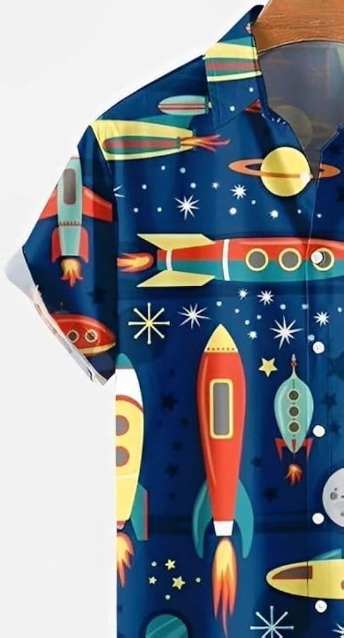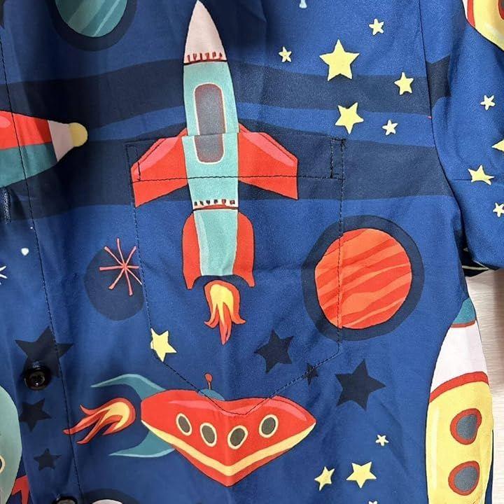 *大胆なファッションを楽しめる宇宙模様の半袖シャツ。