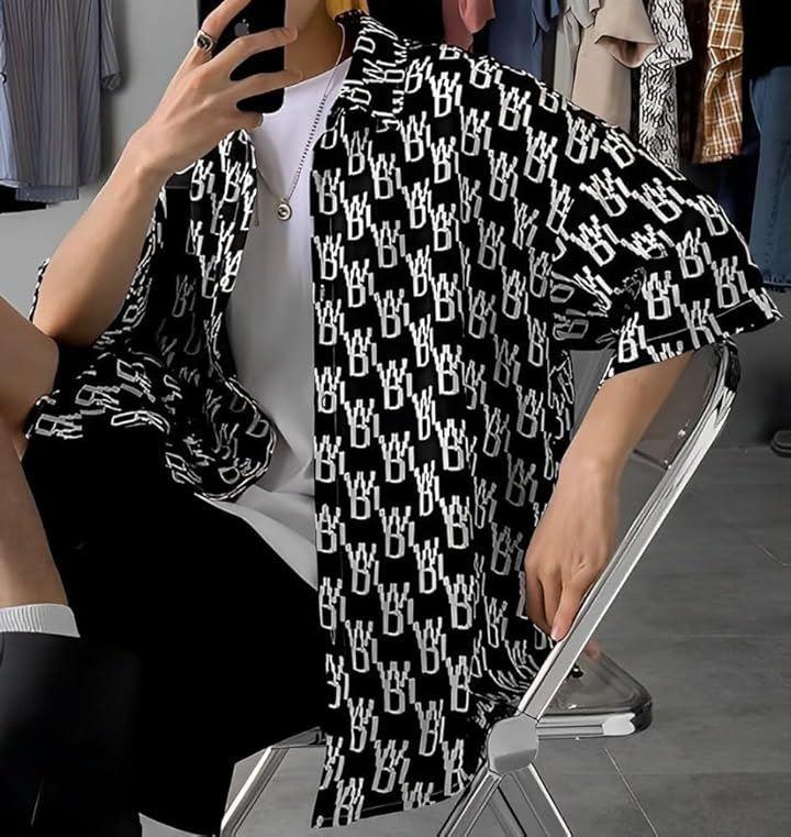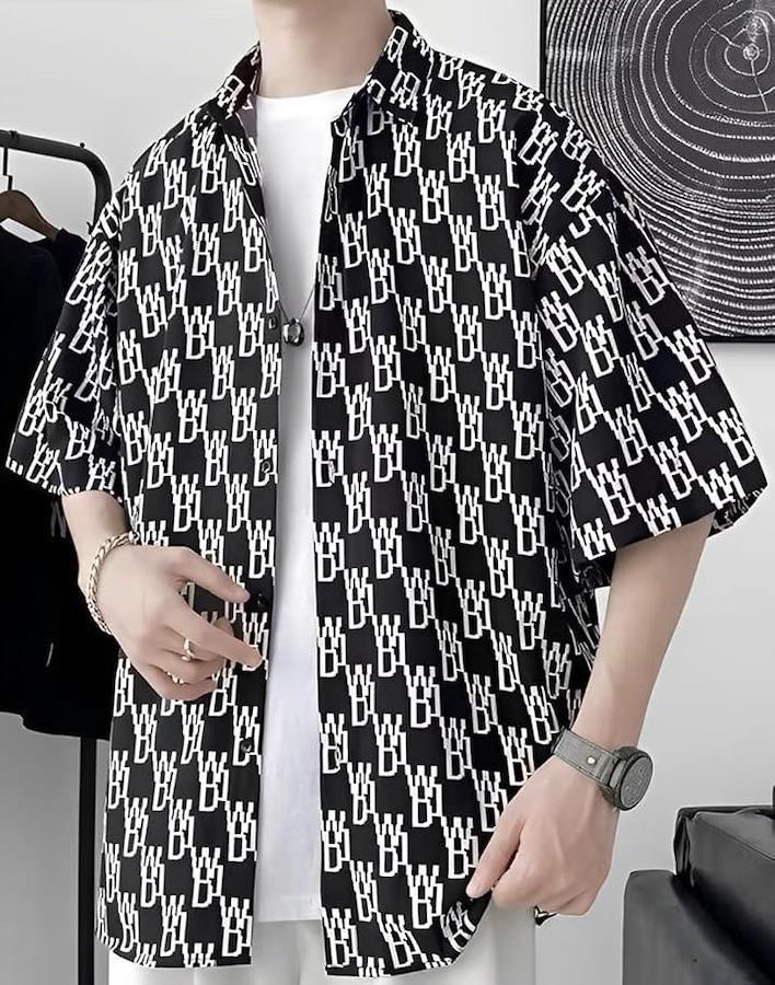 *存在感ある英字ロゴのプリントがカッコいい総柄シャツ。