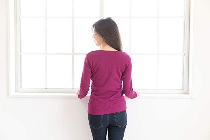 *クルーネックでスタイリッシュな印象のロングスリーブトップスは無地だから流行りすたりなく、どんなアイテムとも合わせやすいので色違いで欲しくなっちゃう*
