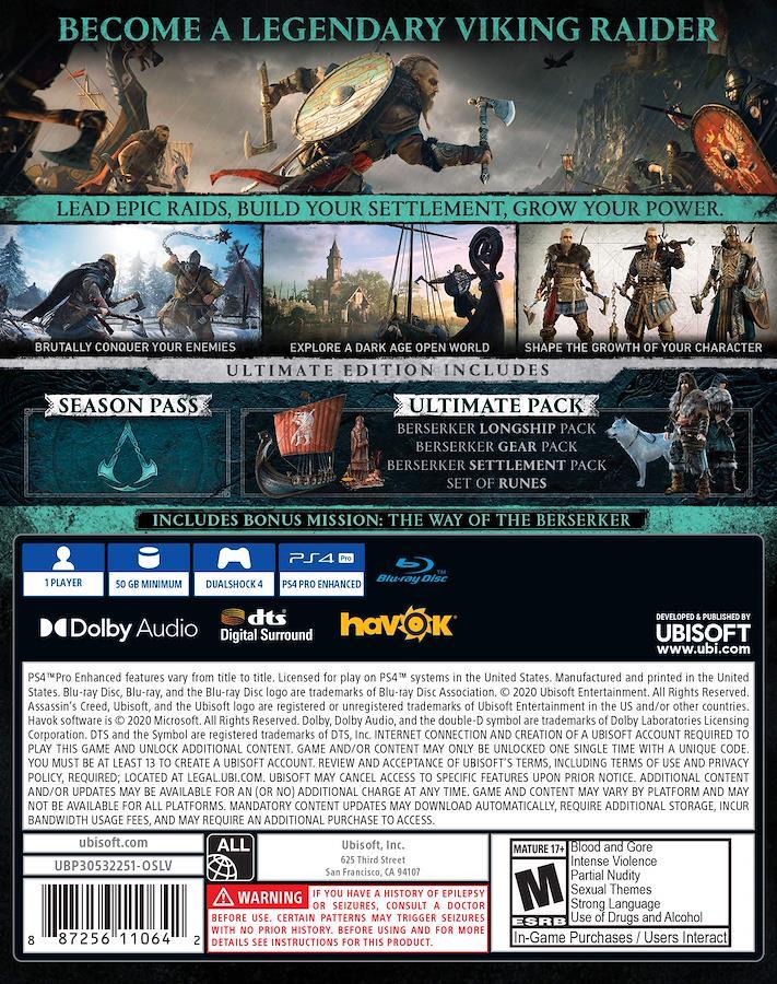 Become Eivor, a legendary Viking raider on a quest for glory. Explore England's Dark Ages as you raid your enemies, grow your settlement, and build your political power. Game leverages Smart Delivery allowing access to both the Xbox One title and Xbox Series X title when available. Pre-purchase now for early access to the bonus mission The Way of the Berserker.