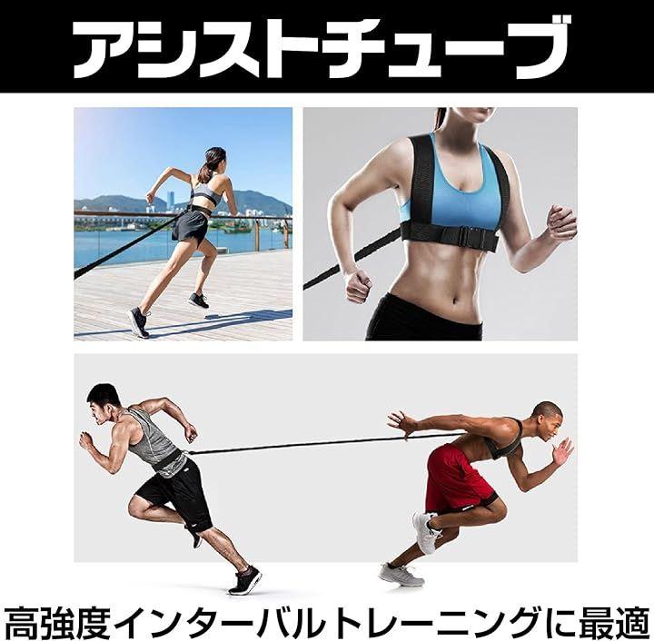 このアシストチューブは、パッド入りシートベルト、ウエストベルト、ソフトハンドルを備え、個々のトレーニングニーズに合わせてカスタマイズ可能です。
