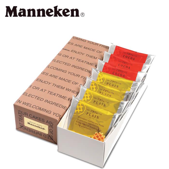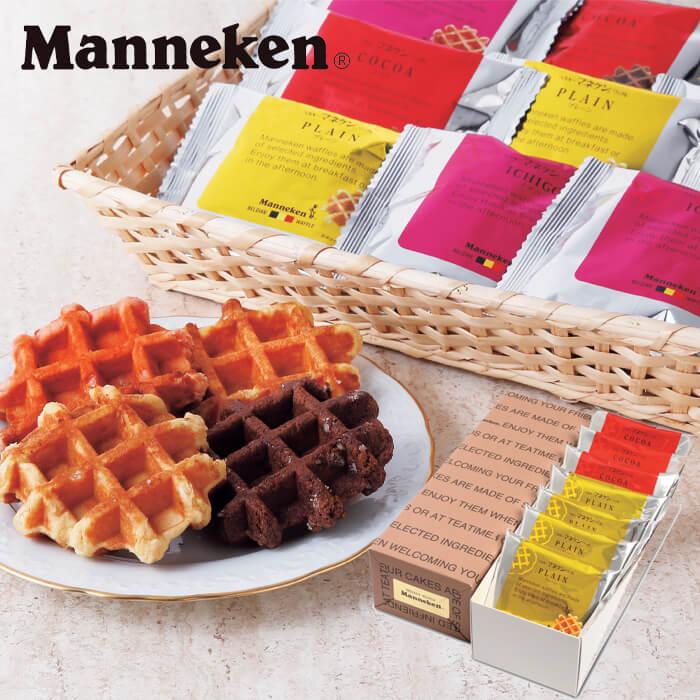 Assorted waffles (7 pieces) SE3-332-1 Manneken Family celebration, recovery celebration, wedding celebration, year-end gift, Father's Day, gift return, Respect for the Aged Day, Seven-Five-Three Festival, grandchildren, parents' home An assortment of plain waffles made with Belgian fermented butter and cocoa waffles kneaded with Belgian chocolate. .