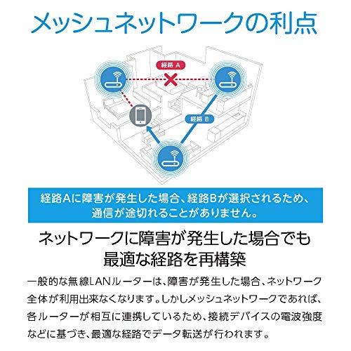 【テレワーク(在宅勤務)も安心】ビジネスレベルのセキュリティーで家庭内接続機器をお守りします。また、帯域幅変更機能でネット会議中の音声途切れもなく、画像も滑らかです。PS4 、switchにも最適。【特長】家庭向けに家の隅々までカバーし、Wi-Fiをつなぎなおす手間なく、家の端でも途切れず快適なメッシュ対応可能ルーター【メッシュWiFiとは?】複数のルーターが1つのWi-Fiシステムとして、今まで届きにくかった場所まで電波を送る仕組み【ペアレンタルコントロール】子供のスマートフォンやPCの時間や接続を制限可能【高度なセキュリティ機能】不正なWebサイトや外部から攻撃を遮断、ゲーム機やスマートフォンなどのセキュリティ対策にも【サイズ・重量】218 ×45×148 mm(幅×高さ×奥行) 約650g 【保証】2年