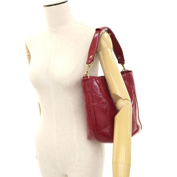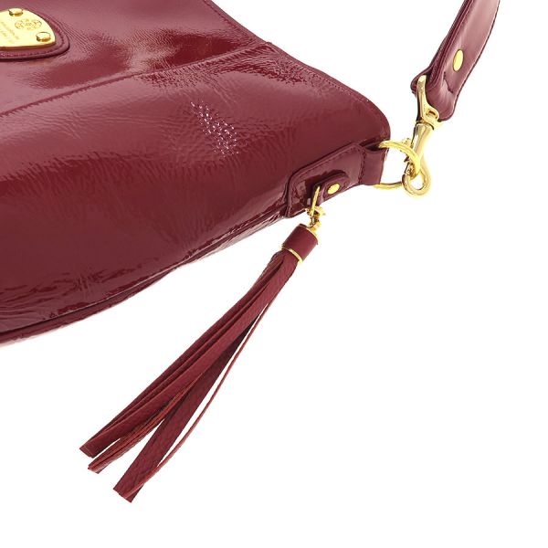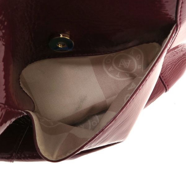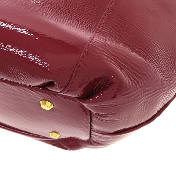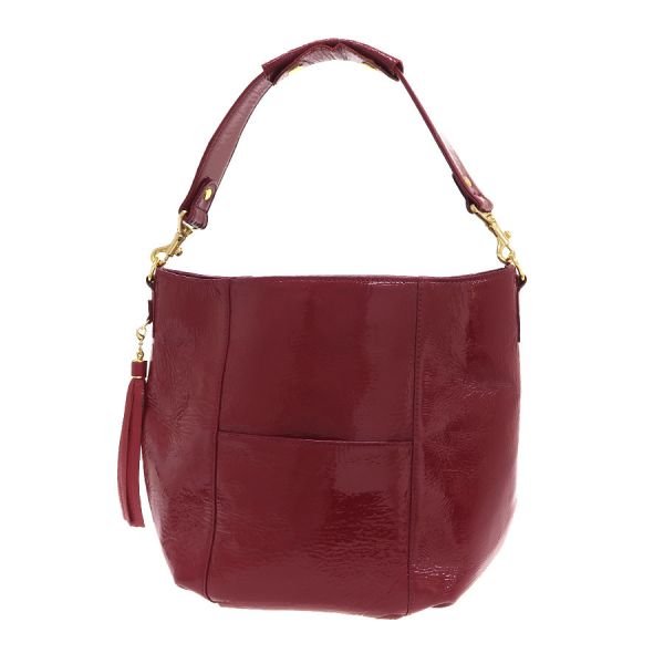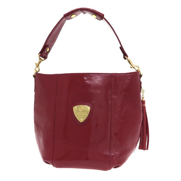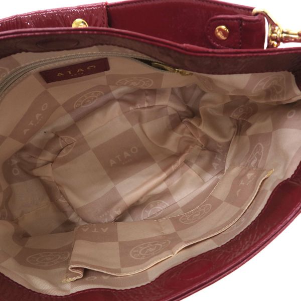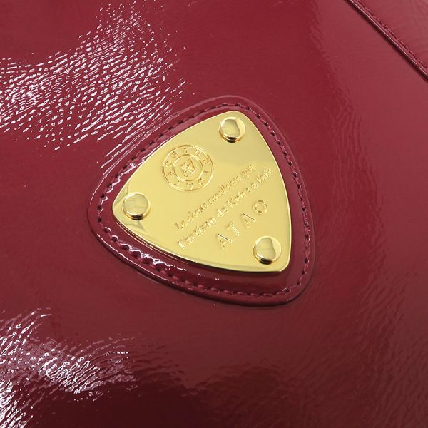 アタオのワンマイルバッグのご紹介です!エナメルコーティングにゴールドカラーのロゴプレートが映えます!開閉はマグネット式で、中はファスナーポケット1ちう、ポケット2つあり。表の底部分には鋲が4つあり。右側面にはフック付きのタッセル飾りを付けることができます。背面にはマグネット開閉式ポケット1つあり。ショルダーストラップは両端にフックがあり、ワンサイズの長さとなります。肩当て部分はスナップボタン付きで、脱着可。☆状態は、本体の型崩れ、表面のスレ・シワ、角や縁のスレ、マグネットや金具部分の小傷・くすみ、中の薄汚れ、背面ポケットの中の汚れが見受けられますが、きれい目なお品ですよ!フェミニンな雰囲気のあるバッグですよ!