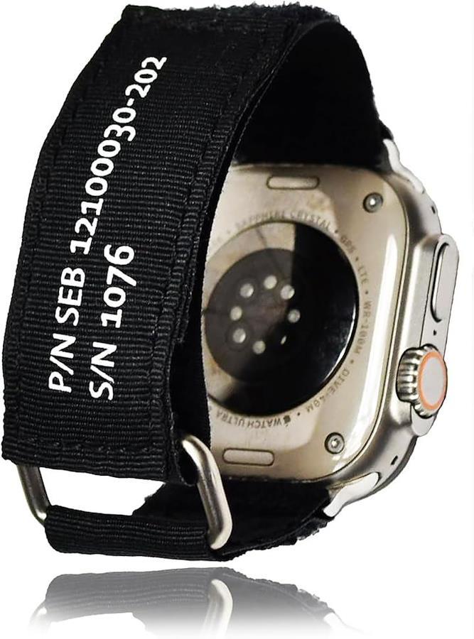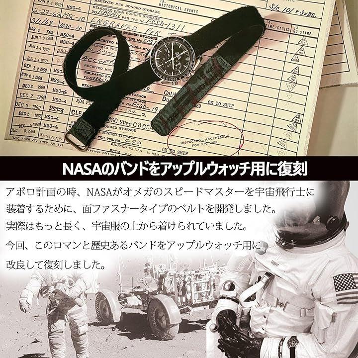 実際はもっと長く宇宙服の上から着けられていましたバンドですが、これをモチーフにアップルウォッチ用に改良して復刻しました。