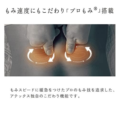 【軽量&コンパクト】 従来品(AX-HCL308)より約25%サイズダウン。重量も約14%軽くなり使いやすくなりました。 置き場所に困らない手軽さなので、お誕生日プレゼントやお世話になった人へのギフトにもおすすめです。 【「バウンド回転」もみ玉で人の手のようなマッサージを実現】 もみ玉にスプリング機能と回転機能をプラス。まるで人の手でマッサージされているような滑らかなマッサージを体験出来ます。 【こだわりの「プロもみ?」モード搭載】 もみ玉のが1回転する速度に緩急をつけた、「プロもみ?」モードを搭載。プロのもみ技を追求した、アテックス独自のこだわり機能です。 【3つの選べる自動プログラム搭載】 プロもみ??モード:もみ玉が1回転する速度に緩急をつけ、プロのもみ技を追求しました。 ゆっくりモード:1分間に約20回転の低速に固定。お仕事中の気分転換にもおすすめ。 ふつうモード:1分間に約30回転の標準的な速度でマッサージが楽しめます。 【ハンドグリップ付きカバー】 取っ手付きカバーで持ち運びも楽々。 【パッケージ】 環境に配慮したサスティナブルパッケージを採用。 【安心安全】約15分で自動停止・メーカー保証1年 【車でも】(別売)カーアダプター対応だから家でも車でもマッサージOK ※運転中に使用しないでください。12V車専用です。24V車には使用しないでください。 【付属品】ACアダプター ■本体サイズ:(約)W320×L200×H100mm / 約1.2 kg ( アダプター含まず) ■ 電源コード:約2m 【医療機器認証番号】304AABZX00057000 製品名:ルルド マッサージクッションミニ 禁忌・禁止:次の人は使用しないでください。症状を悪化させるおそれがあります。 医師からマッサージを禁じられているひと。 例:血栓(塞栓)症、重度の動脈瘤、急性静脈瘤、各種皮膚炎、皮膚感染症。 自分で意思表示のできない方や身体の不自由な方には使用させないでください。 使用中身体に異常を感じたときはすぐに使用を中止し、医師に相談してください。 使用しても効果が現れない場合は医師または専門家に相談してください。 幼児やお子様に使用させたり、本体で遊ばせたり、上にのせたりしないでください。 使用前にカバーに破れが無いか確認し、破れがある場合使用を中止してください。 カバーを外した状態や、破れた状態で使用しないでください。 カバーが破れた場合は勝手に修理などせず、お買い上げの販売店または製造販売元に連絡し てください。他 形状・構造及び原理:2か所に合計4個のもみ玉を搭載した、マッサージクッション。 使用目的または効果:あんま、マッサージの代用・一般家庭で使用すること 疲労回復、血行をよくする、筋肉の疲れをとる、筋肉のこりをほぐす、 神経痛・筋肉痛の痛みの緩解 使用上の注意:停電のときはすぐに電源を切ってください。 使い始めは5分程度をめどに弱い刺激でご使用ください。 1回の使用は15分以内とし、1日の使用は1日2回、30分以内にしてください。 マッサージの刺激が強すぎると感じた時は、もみ玉を弱く当ててください。 同一箇所への連続使用は避けてください。 本体に大きな荷重がかかるような使い方をすると、保護装置が作動し、動作が止まる場合が あります。 停止した場合は、しばらく本体を休ませて(1時間程度)から再度動作させてください。他 製造販売業者及び製造業者についての情報:株式会社アテックス 【軽量&コンパクト】従来品(AX-HCL308)より約25%サイズダウン。重量も約14%軽くなり使いやすくなりました。置き場所に困らない手軽さなので、お誕生日プレゼントやお世話になった人へのギフトにもおすすめです。 【こだわりの「プロもみ」モード搭載】 もみ玉のが1回転する速度に緩急をつけた、「プロもみ」モードを搭載。プロのもみ技を追求した、アテックス独自のこだわり機能です。 【「バウンド回転」もみ玉で人の手のようなマッサージを実現】もみ玉にスプリング機能と回転機能をプラス。まるで人の手でマッサージされているような滑らかなマッサージを体験出来ます。 【お好みの姿勢でマッサージ】 首・肩・腰・背中・ふともも・ふくらはぎまで使い方いろいろ 【3つの選べる自動プログラム搭載】「プロもみ」「ゆっくり」「ふつう」の3つのモードを搭載。自分のコリに合わせて、お好みで選べます。