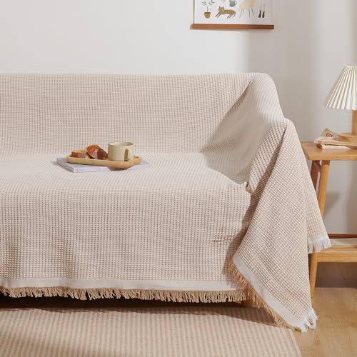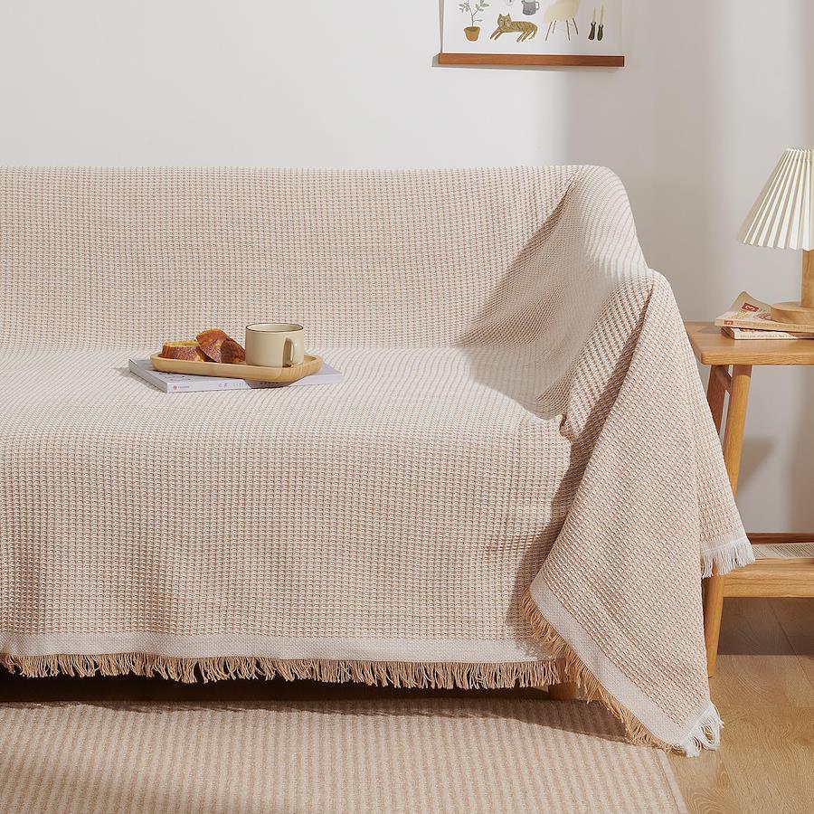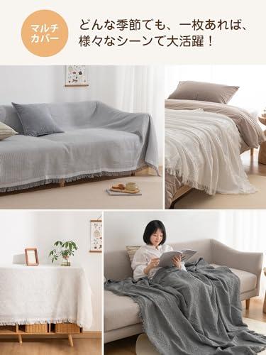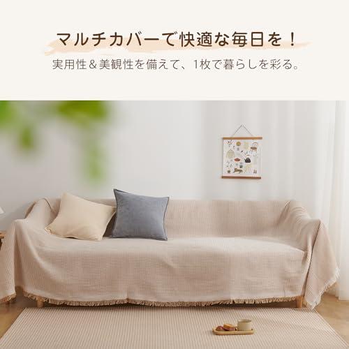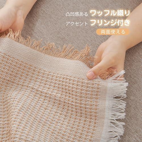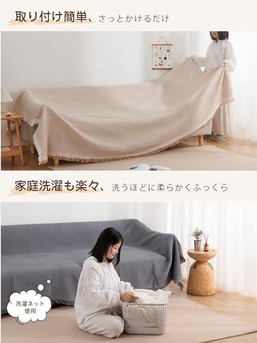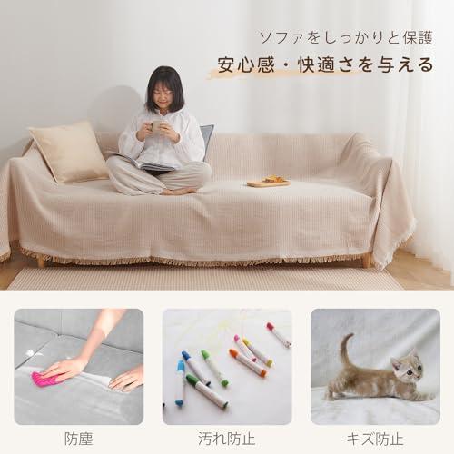 ・【素材】ポリエステル混の生地で、快適で通気性に優れて、さらりとした柔らかい肌触りになります。季節を選ばず、オールシーズン心地よい使用感を味わえます。 ・【サイズ】5サイズ展開で、色んな形のソファに対応可能:90×180cm(1人掛け)、130×180cm(1~2人掛け)、180×230cm(2人掛け)、180×300cm(3人掛け)、180×340cm(3~4人掛け) ・【デザイン】立体感のある北欧風デザイン(ワッフル柄)と、ナチュラルなフリンジ付きで、シンプルながらもオシャレ度が高い。優しいカラーはインテリアと合いやすく、気軽にお部屋の飾り付けを実現。 ・【幅広い使用範囲】かけるだけでソファー全体をカバーでき、防塵やキズ防止などの機能があり、ソファーをしかっりと保護できます。多機能で、ベッドカバー、テーブルクロス、冷房毛布、ひざ掛け、防塵カーペット、キャンプカーペット、旅行毛布などとして一年中活躍できます。 ・【丸洗いOK】手洗い&洗濯機(ネット使用)で洗濯可能、いつでも清潔に使用できます。洗うほどにふっくら、柔らかくなり、より気持ちよくご使用頂けます。