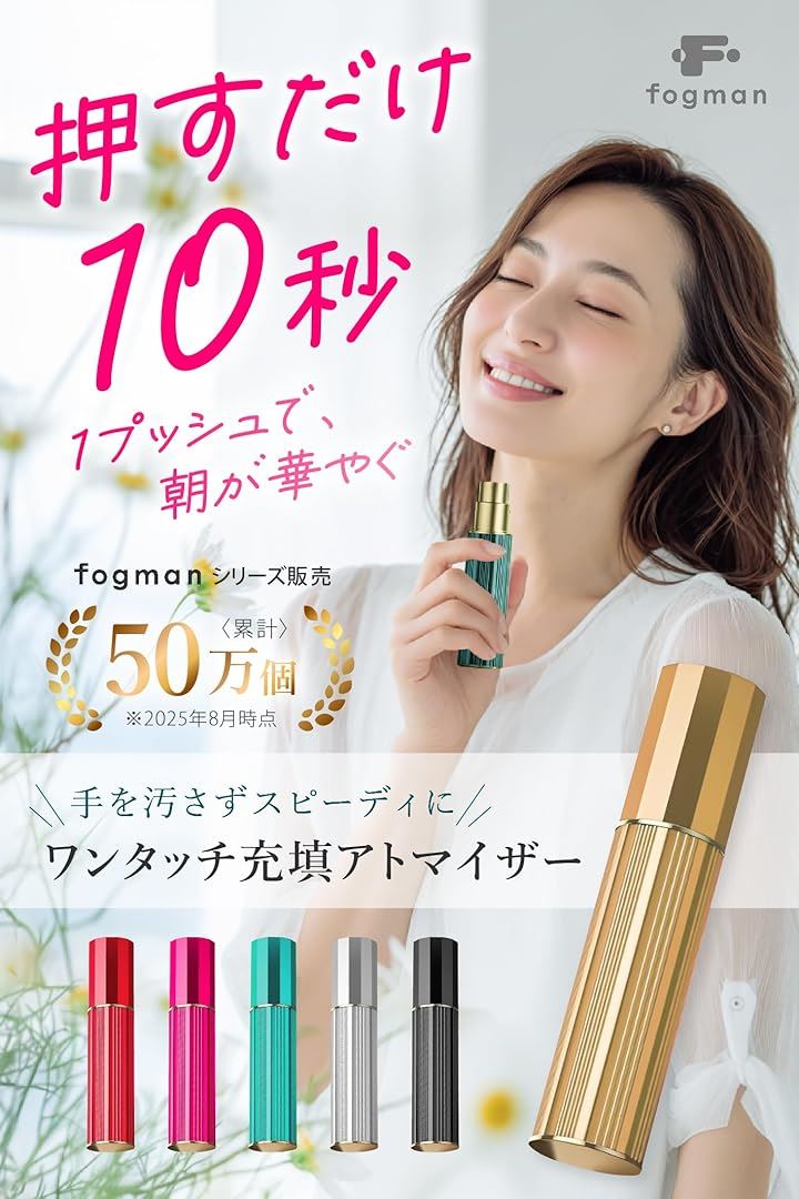 「底部ワンタッチ充填機構」独自のワンプッシュ構造により、ボトルを逆さにして押すだけで香水を10秒で補充。
