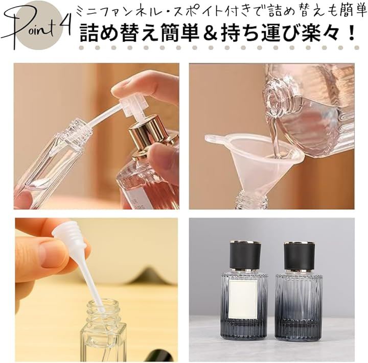 「詰め替え簡単&持ち運び楽々。」ミニファンネル・スポイト付きで詰め替えも簡単。