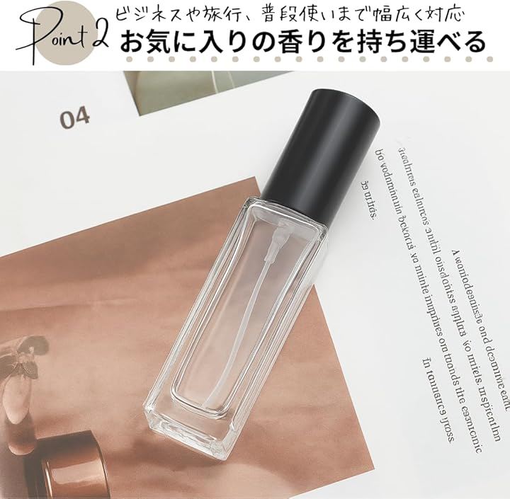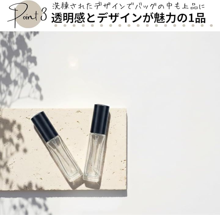 香水やアロマスプレーの持ち運びに最適で、ビジネスや旅行、普段使いまで幅広く対応。
