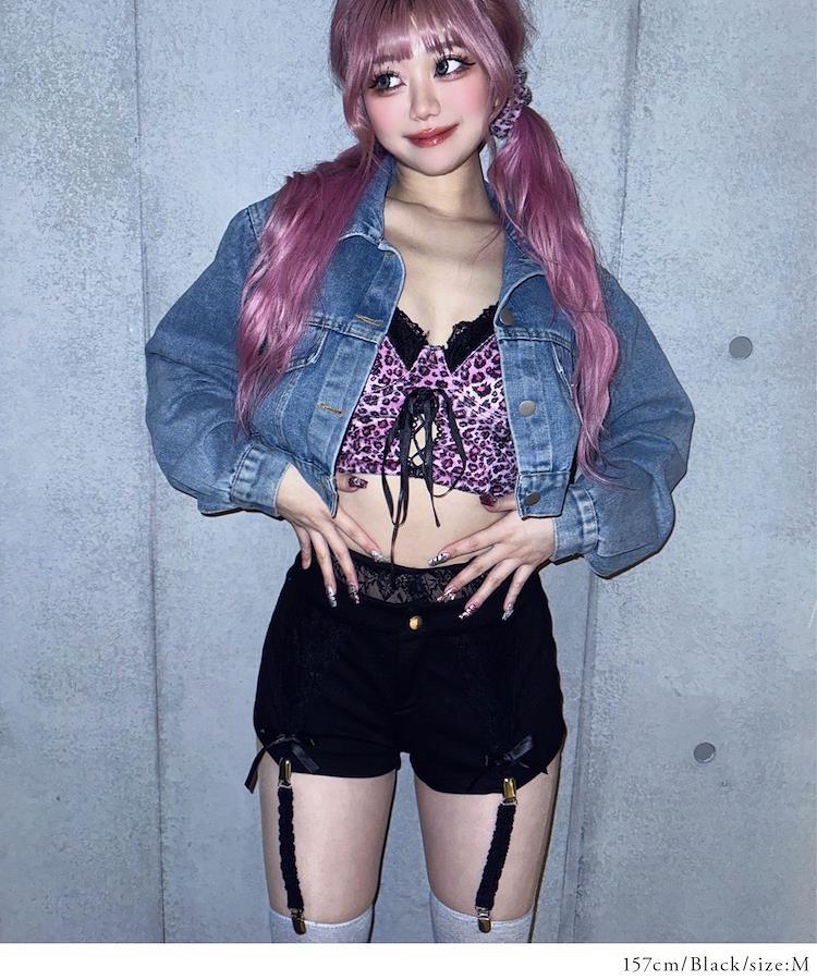 攻め感たっぷりのレースデザインと、ガーター風ストラップが視線を釘付けにする映え確定の見せパン。