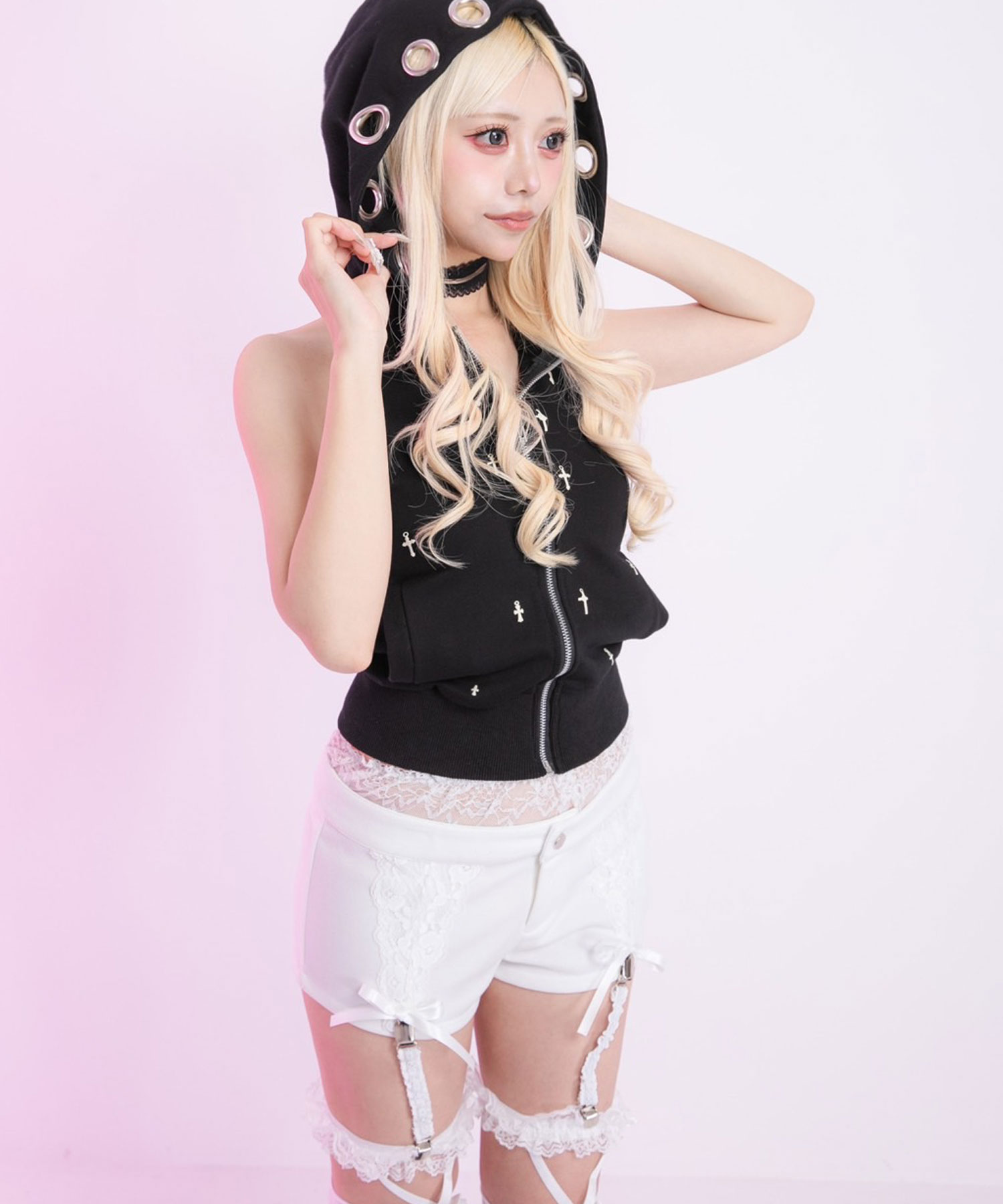 ウエストはレースランジェリーの魅せパン着用風に縫い付けて1枚でコーデ完成。