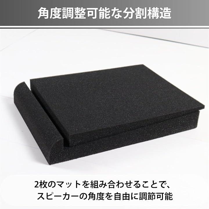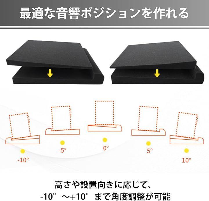 「角度調整可能な分割構造」 2枚のマットを組み合わせることで、スピーカーの角度を自由に調節可能。