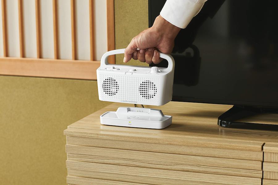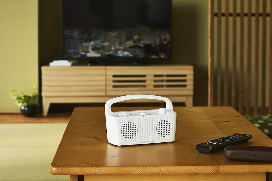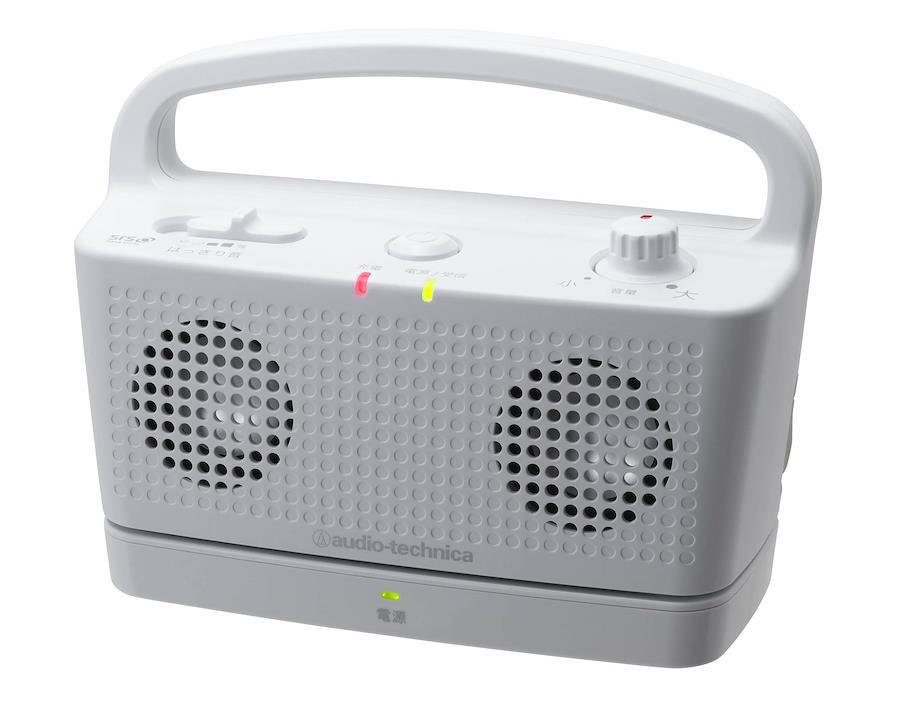●テレビの音声が離れた場所ではっきり聞けるかんたん便利な高品質ワイヤレススピーカーシステム●好みで選べる2段階の「はっきり音」機能「はっきり音」スイッチを入れると、音量を変えることなく音声やセリフを明瞭に聞くことができます。2段階切り換えで効き具合を調整可能です。●大口径φ52mmステレオスピーカーで音声やセリフが大音量でしっかり聞ける小さな音から大きな音まで、テレビの音が聞きやすいクリアな音質で楽しめます。●テレビ音声と連動して電源が自動で切れる「自動電源オフ」機能一定時間テレビから音声がないか、小さい音の状態が続くと送信機とスピーカーの電源が自動でオフになります。●相互通信で電波を自動選択・自動設定送信機とスピーカーの常時通信により妨害する電波を回避し、最適なチャンネルを自動選択。安定した通信を実現*します。* 伝送可能な距離は、送信機から約30mです。環境によっては通信状況が変わる場合があります。●キッチン周りでの使用も安心なIPX2相当の防滴仕様** JIS保護等級。IPX2相当とは、取っ手側から15度以内で傾斜させて鉛直に落下する水滴に対して本体機能を保持するもので.
