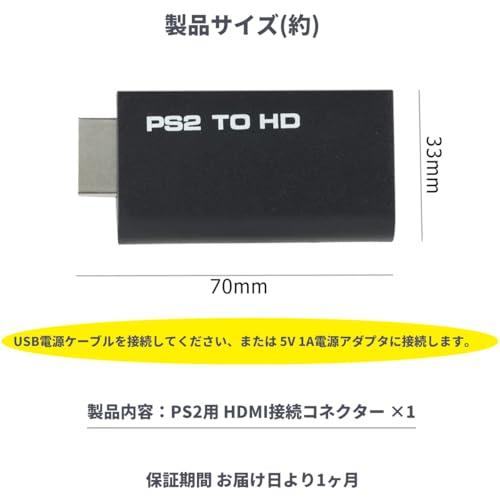 PS2のAV出力端子に接続し、HDMI出力への変換を行なうアダプターです。PS2をテレビだけでなく、PCモニタでも楽しめる!テレビだけでなく、HDMI端子のあるPCモニタでもPS2をお楽しみいただけます。HDMI出力への変換による表示の遅延や音のノイズはゼロ! HDMIセレクタを使用すれば、HDMI接続が可能な他のゲーム機(PS3、Xbox360)などと一緒に、接続を一括管理することができます。USB電源ケーブルを接続してください、または 5V 1A電源アダプタに接続します。保証期間 お届け日より1ヶ月間 PS2のAV出力端子に接続し、HDMI出力への変換を行なうアダプターです。PS2をテレビだけでなく、PCモニタでも楽しめる! テレビだけでなく、HDMI端子のあるPCモニタでもPS2をお楽しみいただけます。HDMI出力への変換による表示の遅延や音のノイズはゼロ! HDMIセレクタを使用すれば、HDMI接続が可能な他のゲーム機(PS3、Xbox360)などと一緒に、接続を一括管理することができます USB電源ケーブルを接続してください、または 5V 1A電源アダプタに接続します 保証期間 お届け日より1ヶ月間