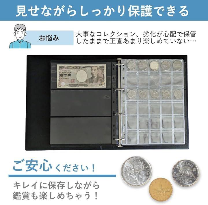 貴重な硬貨や紙幣のコレクションを整理・保管するための便利なコレクターズブックです。