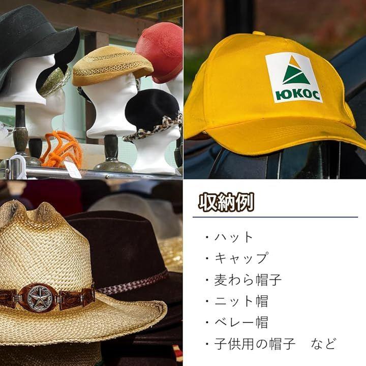 ハット、キャップ、麦わら帽子、ニット帽、ベレー帽、子供用の帽子などの収納に良い品です。