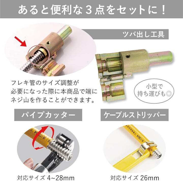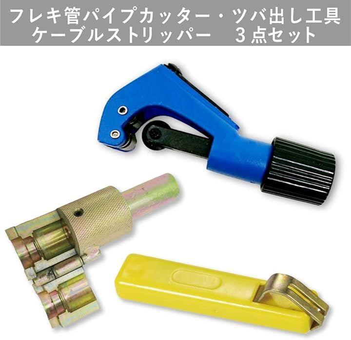 フレキ管パイプカッター、ツバ出し工具、ケーブルストリッパー3点セットです。