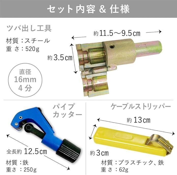 ツバ出し工具「サイズ」全長115~95mm 対応サイズ 直径16mm 4分「重さ」520g 「材質」スチール