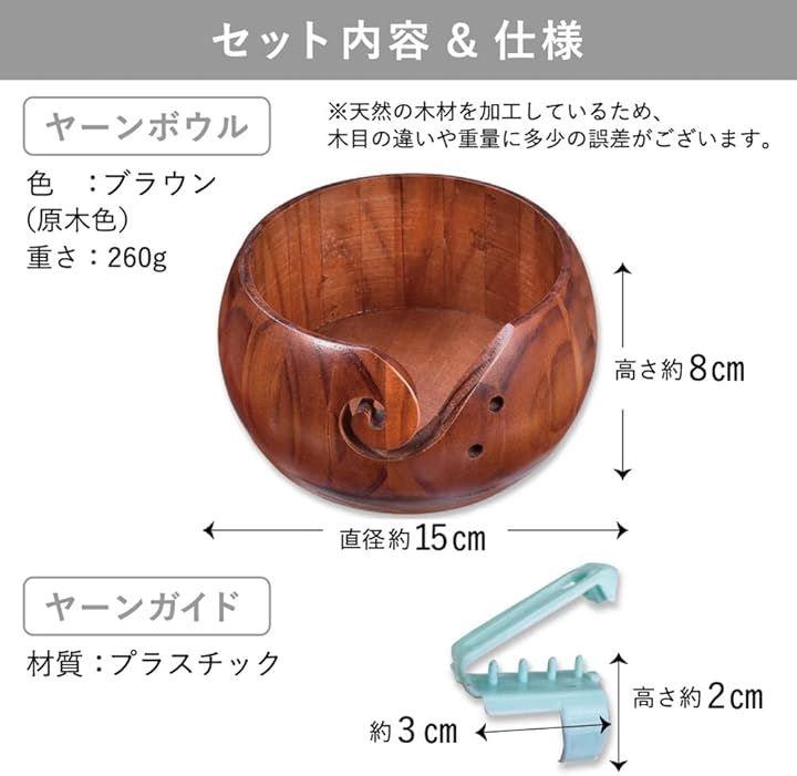 「サイズ」15x15x8cm 「重量」260g 「色」ダークブラウン 「セット内容」 ヤーンボウル、ヤーンガイド *天然の木材を加工しているため、木目の違いや重量に多少の誤差がございます。