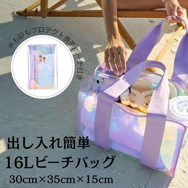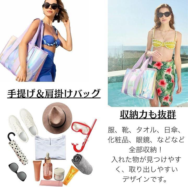 1. 夏の必需品、トレンド感抜群のオーロラビーチバッグ:光の角度によって輝きが変わるオーロラカラーが魅力のビーチバッグ。