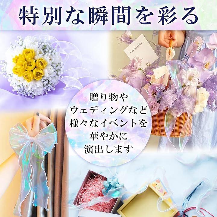 光を反射し幻想的で美しい色彩を生み出すので、リボンが動くたびに輝きが変わる効果を楽しむ事ができます。