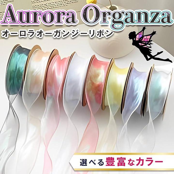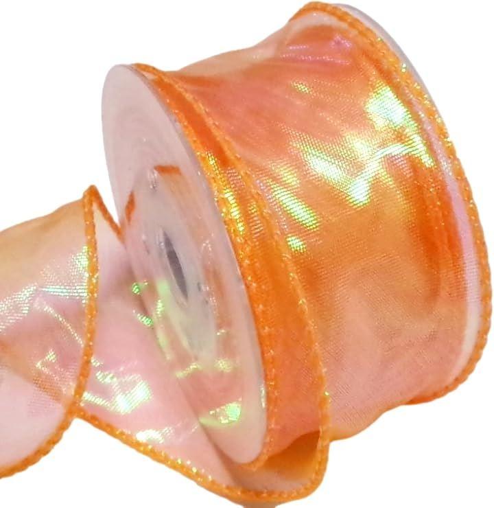 美しい輝きが様々なシーンで活かせる、オーロラオーガンジーリボン「カラー」オレンジ「サイズ」長さ約9mx幅約4cm「素材」ポリエステル100% *約2.5m間隔でつなぎ目がございます。