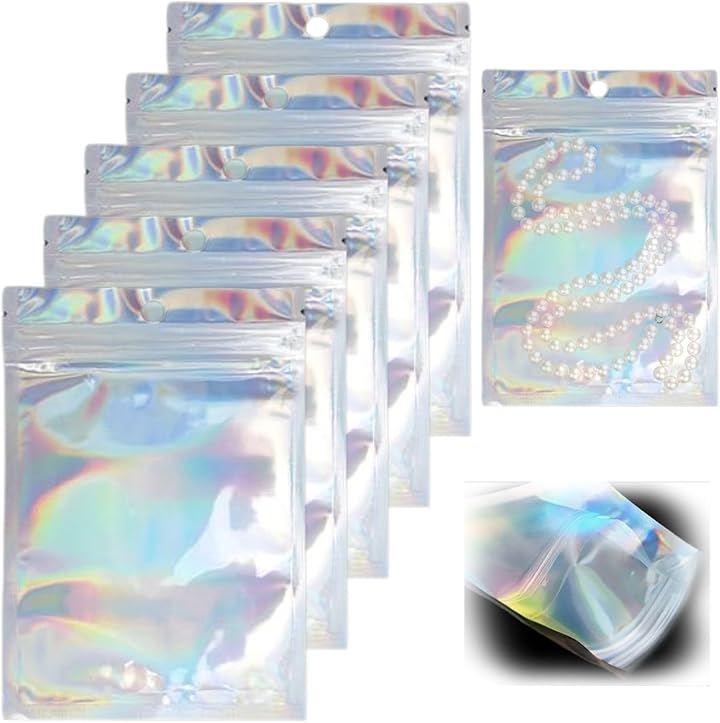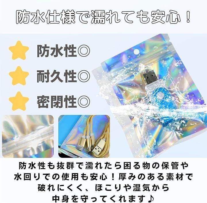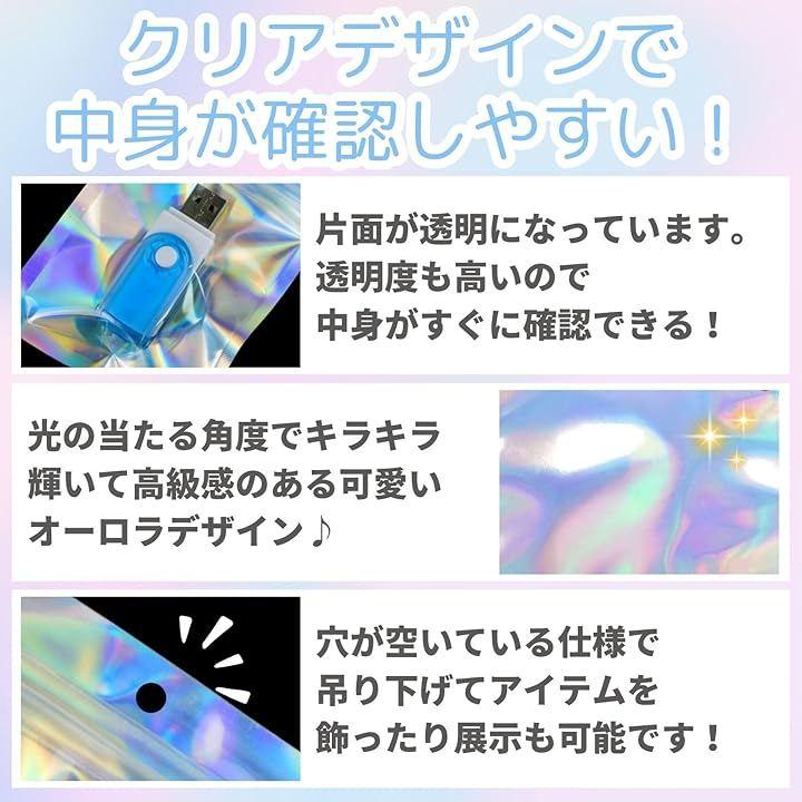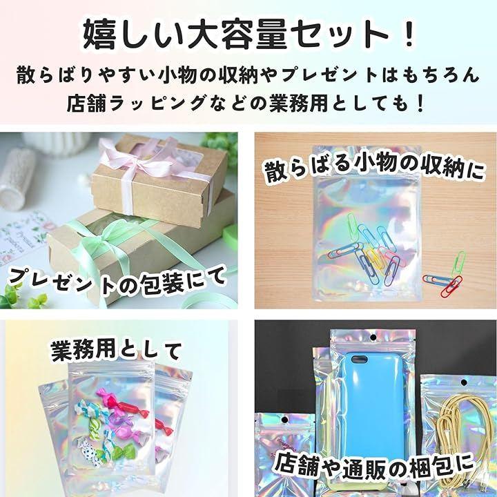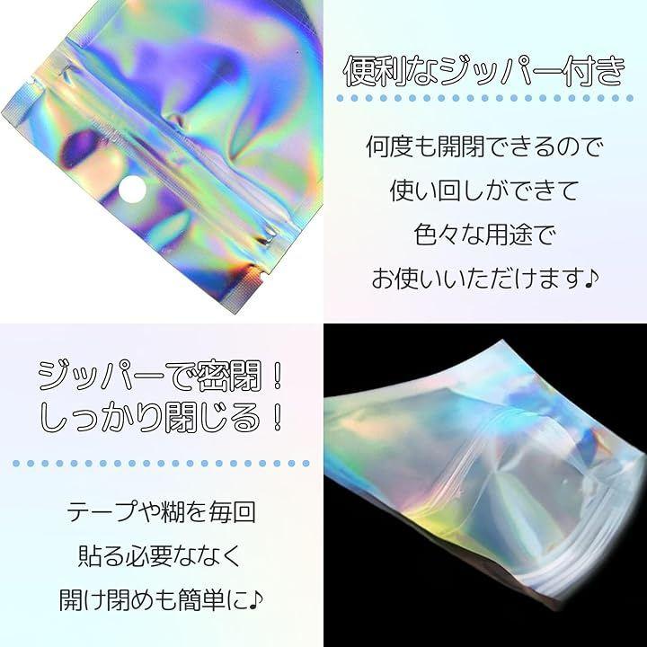 小物やアクセサリー等の小分けや収納に便利。光沢感のあるオーロラカラーで光に反応してレインボーに反射する、オシャレなチャック袋です。