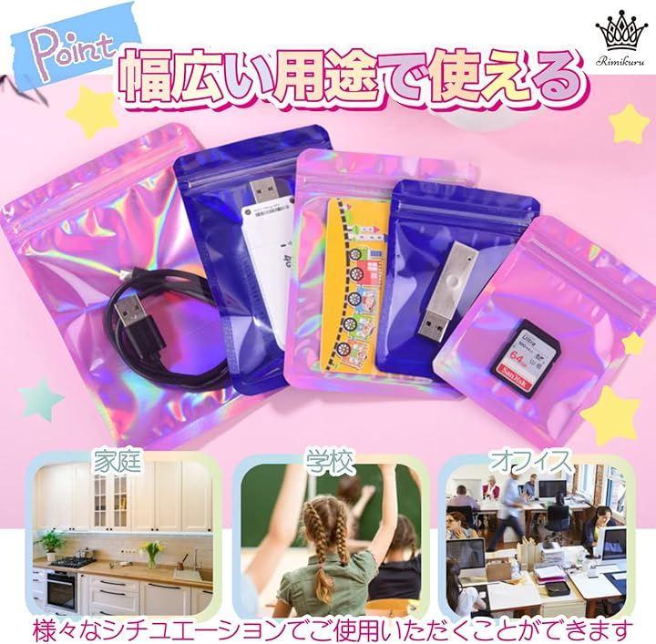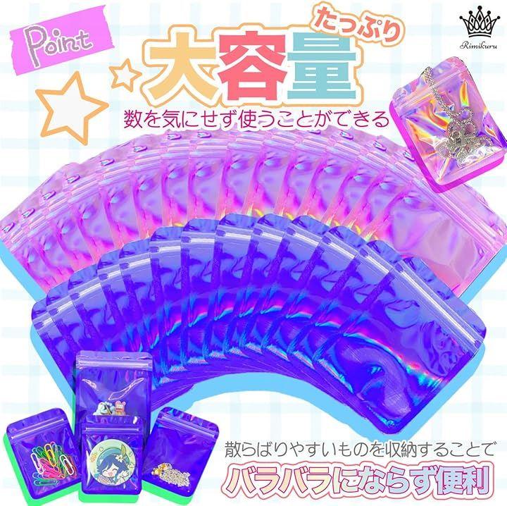 大容量:こちらのオーロラ チャック袋 ミニは大容量の100枚セットをご用意しましたので、数を気にせず使うことができます。