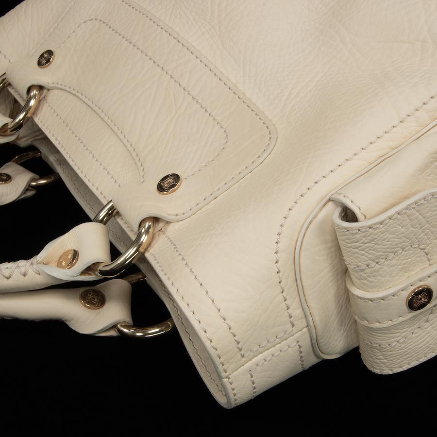 柔らかなアイボリーのお色味が、輝くゴールド金具と相まって、お客様のお手元をこの上なく上品に演出いたします。