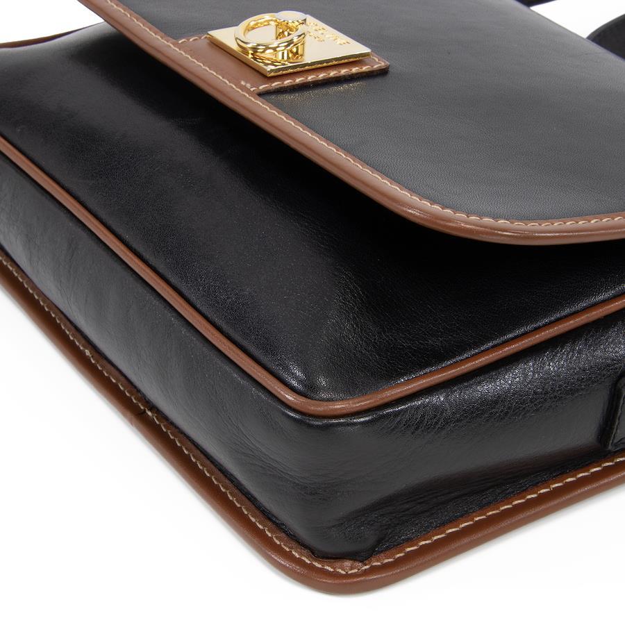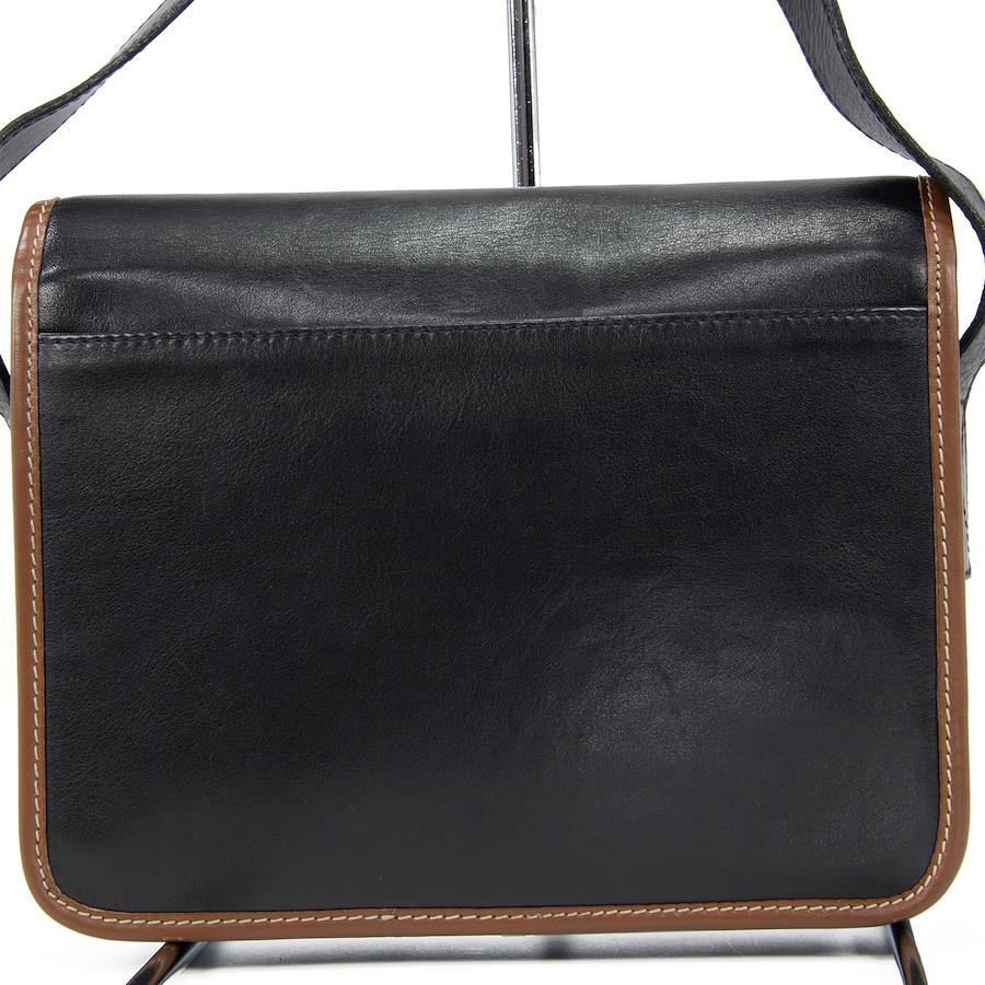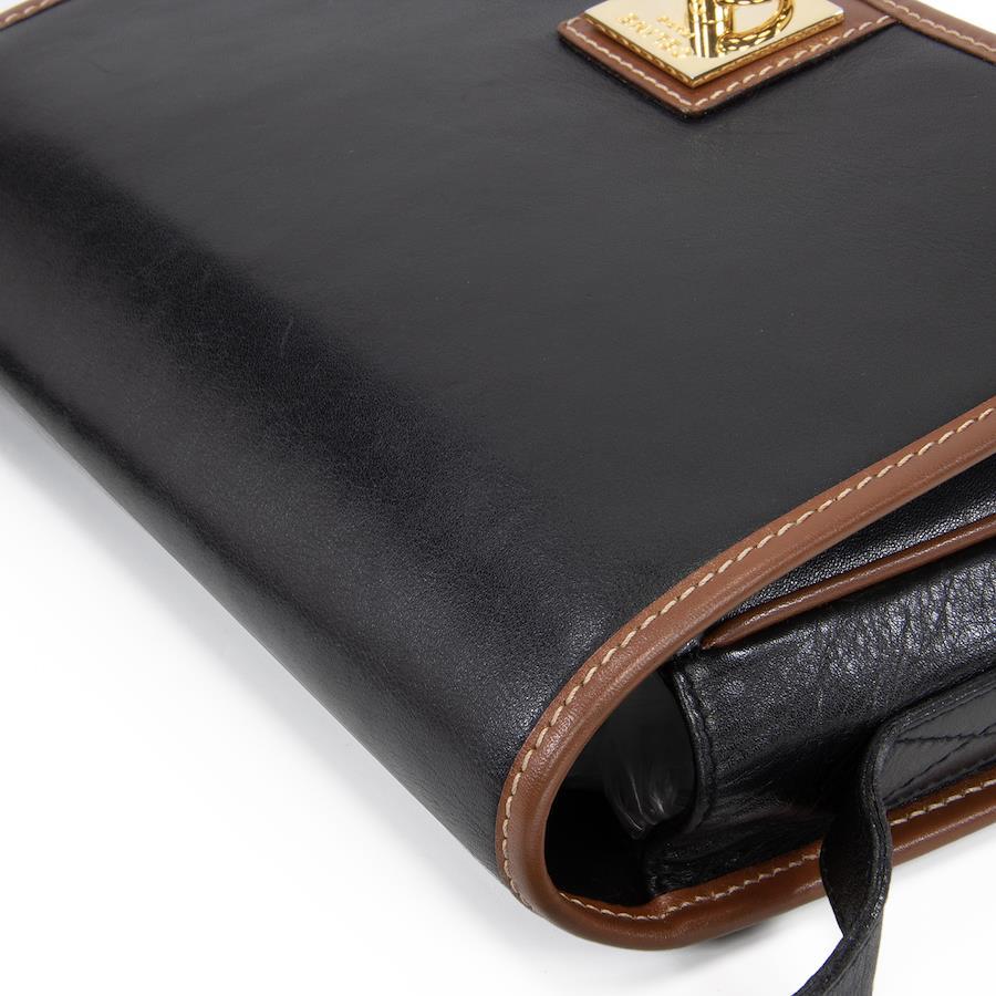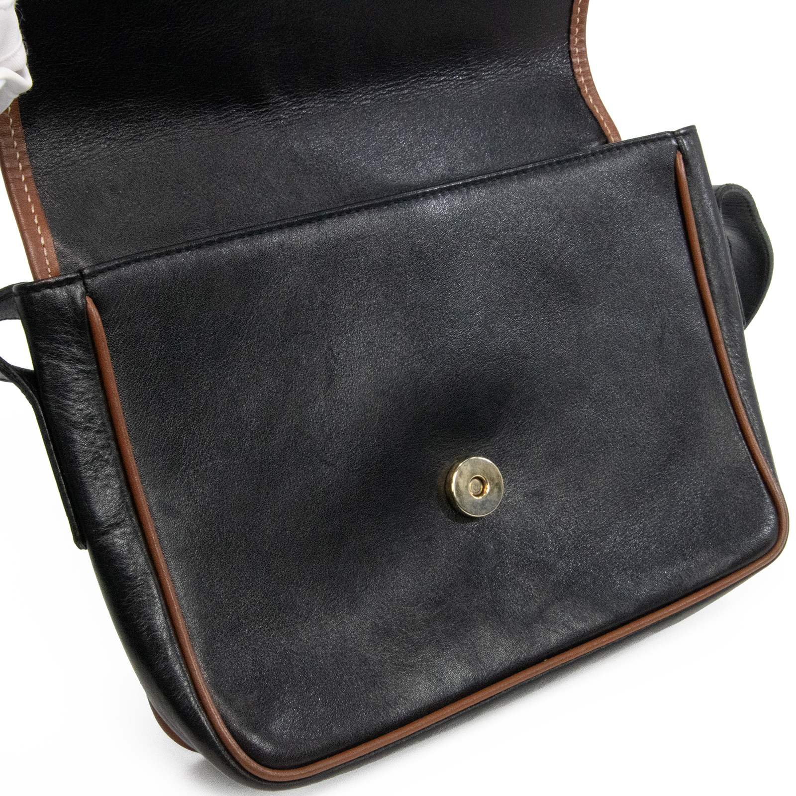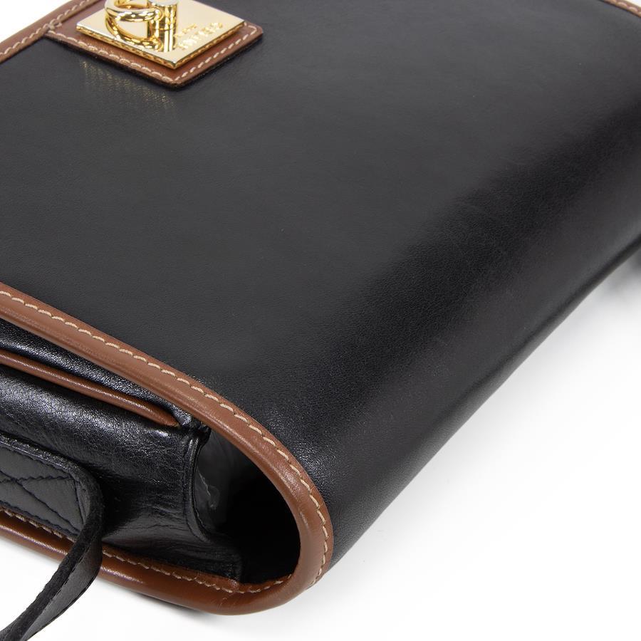 艶やかなブラックのカーフレザーに、温かみのあるブラウンのパイピングが映える、非常に洗練されたデザインでございます。