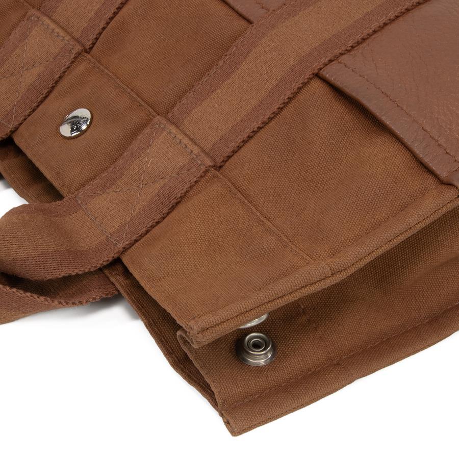 温かみのあるブラウンカラーと、レザーのコンビネーションが、通常のキャンバスモデルとは一線を画す、高級感を醸し出しております。