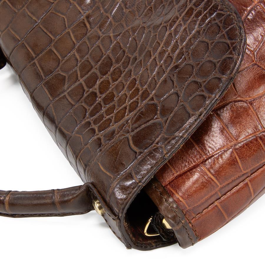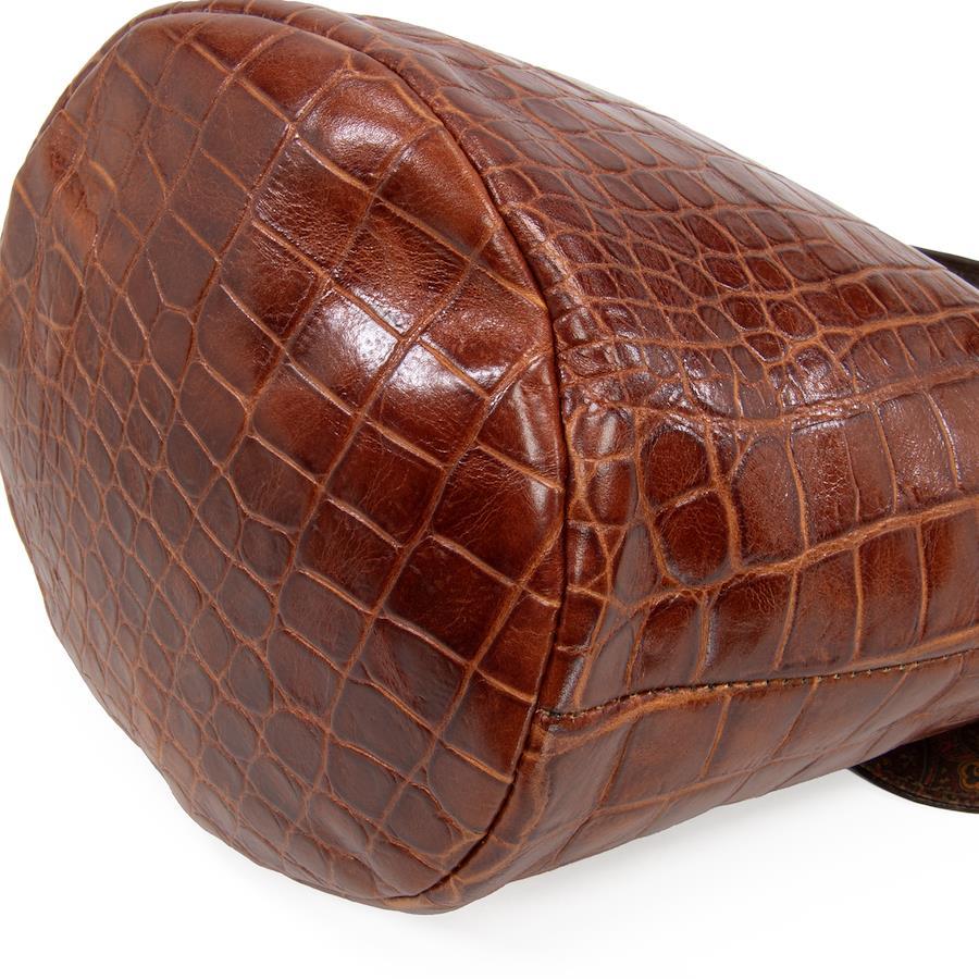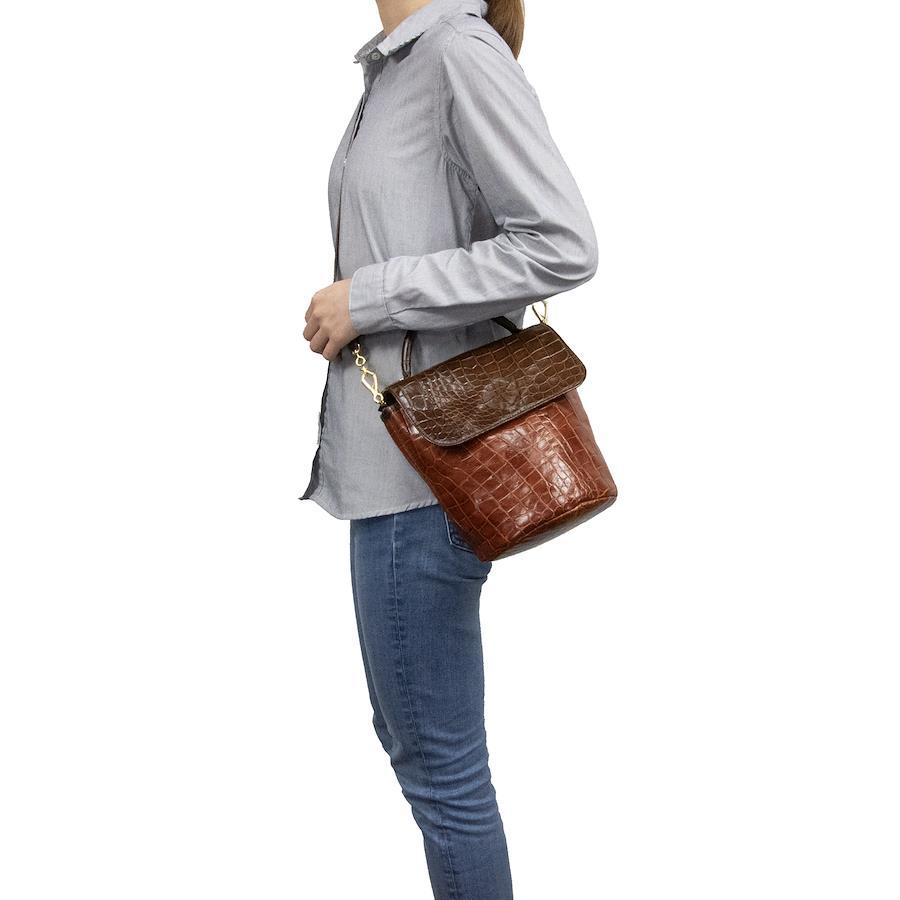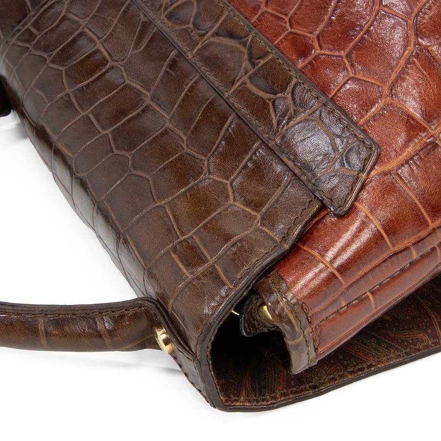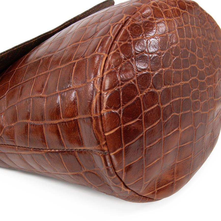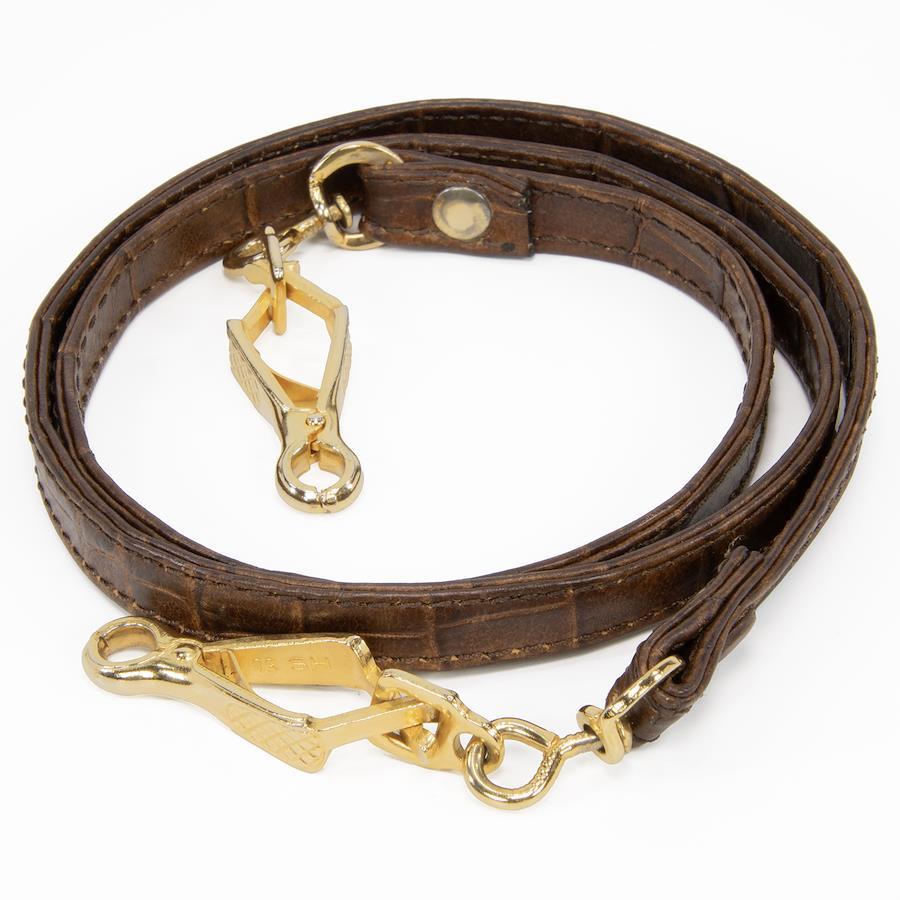 艶やかなクロコダイル型押しレザーを贅沢に用い、深みのあるブラウンのバイカラーで仕上げられております。