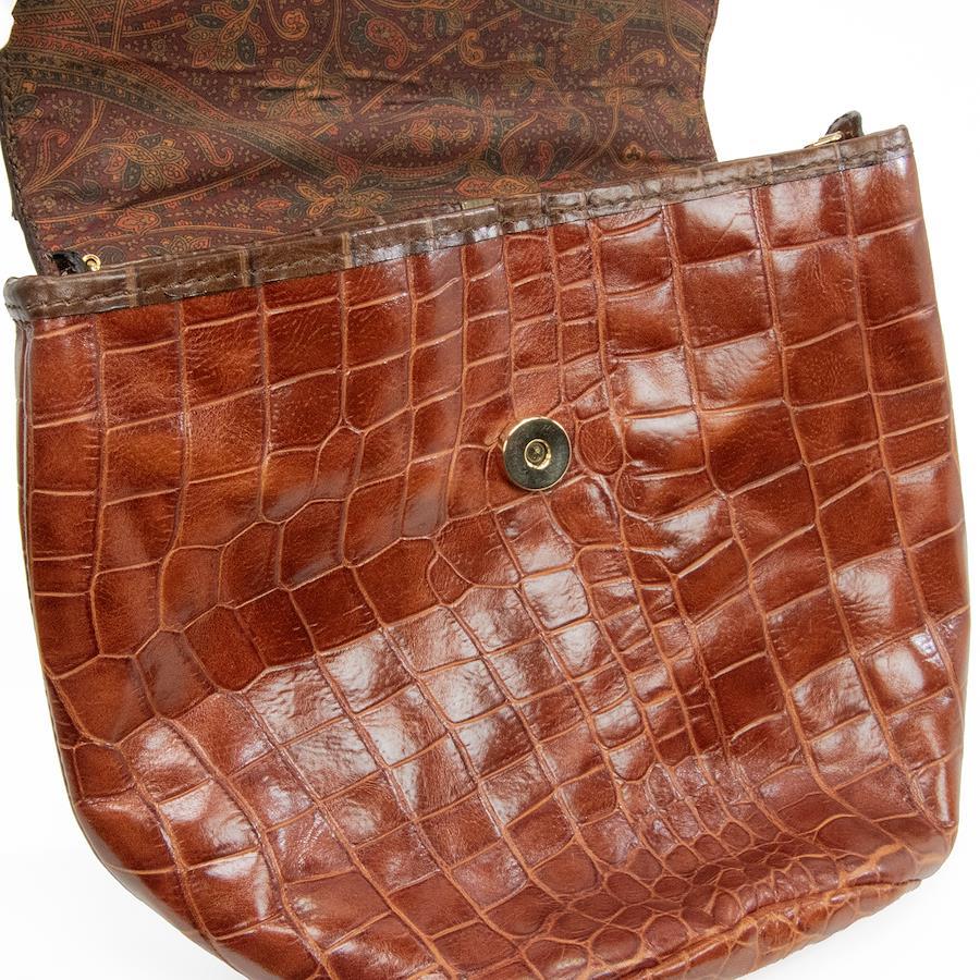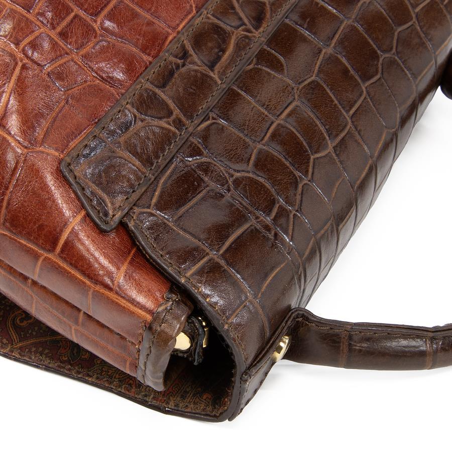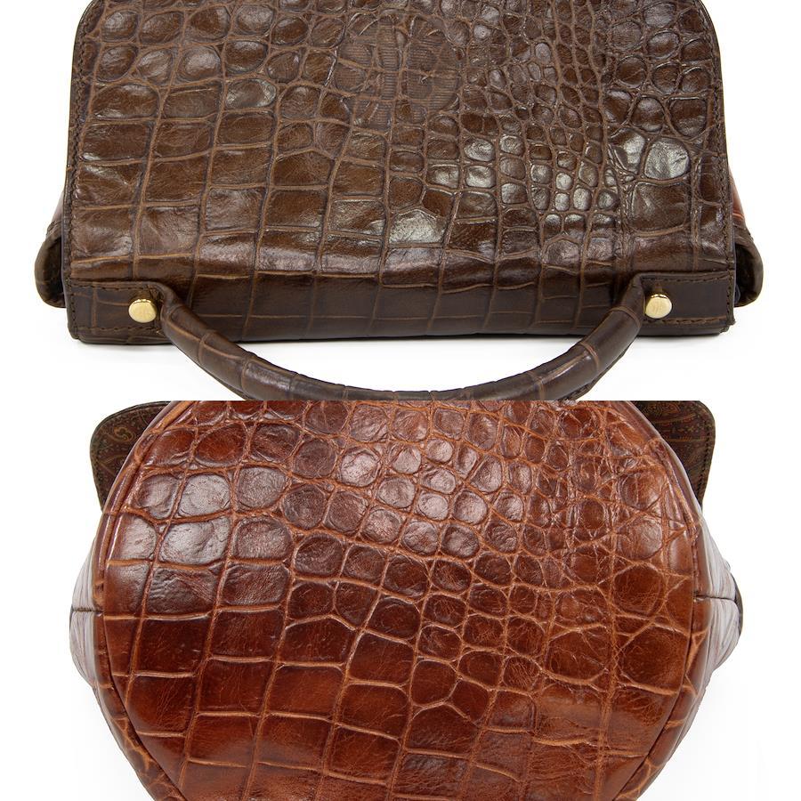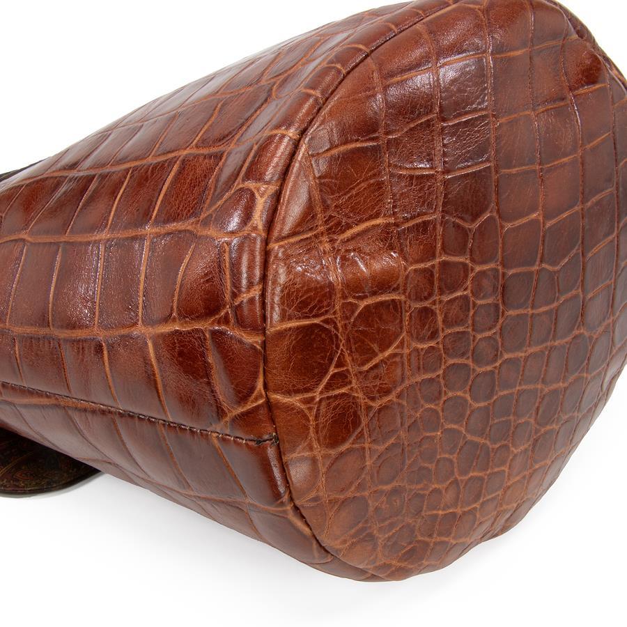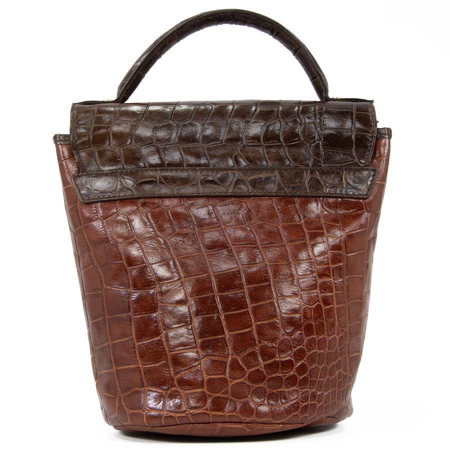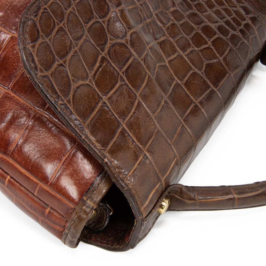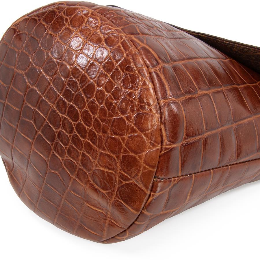 艶やかなクロコダイル型押しレザーを贅沢に用い、深みのあるブラウンのバイカラーで仕上げられております。