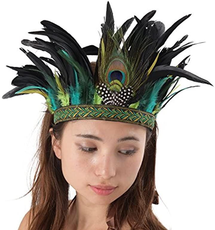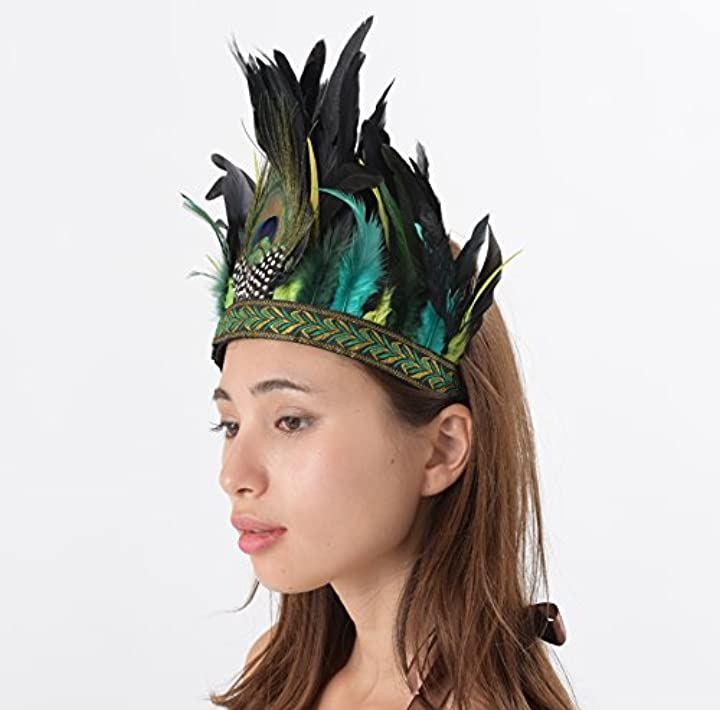黒と緑の綺麗なコントラストに孔雀の羽根飾りがゴージャス&エキゾチック。インパクト大のヘッドドレスです。