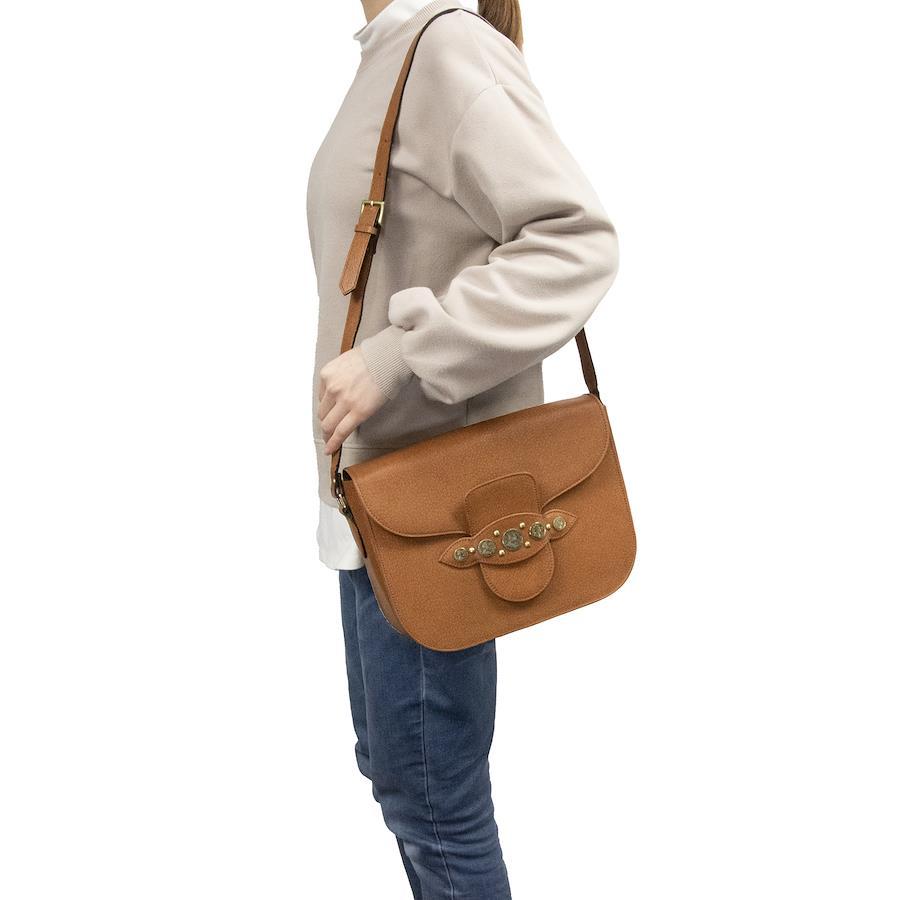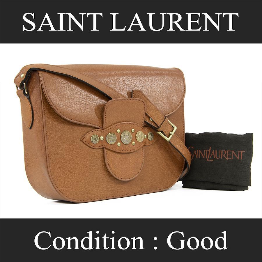 Authentic Saint Laurent shoulder bag/crossbody bag for women, brown, rare, diagonal, vintage, lightweight, coin-engraved, YSL logo, genuine leather, antique gold hardware, high-end, stylish bag, A824