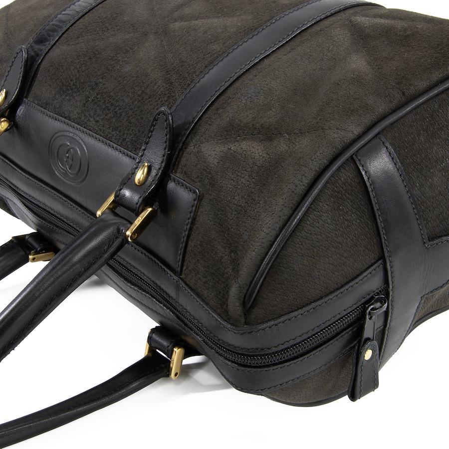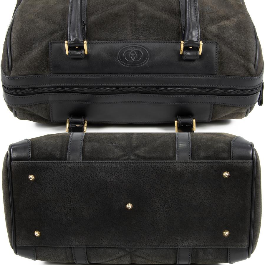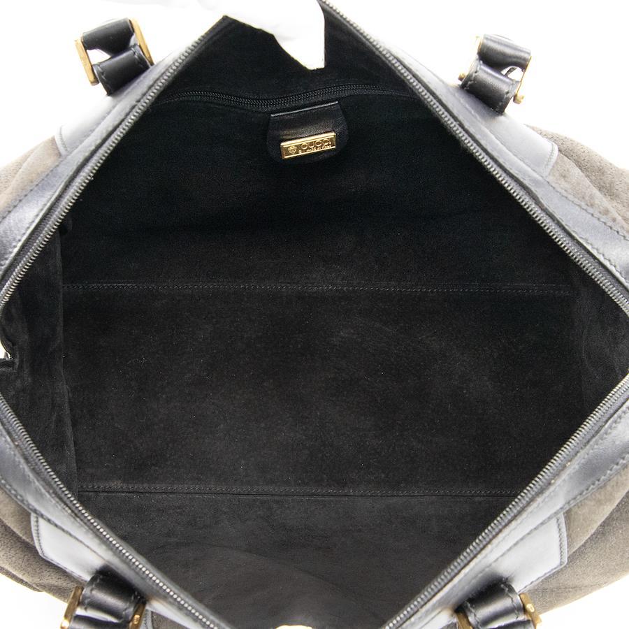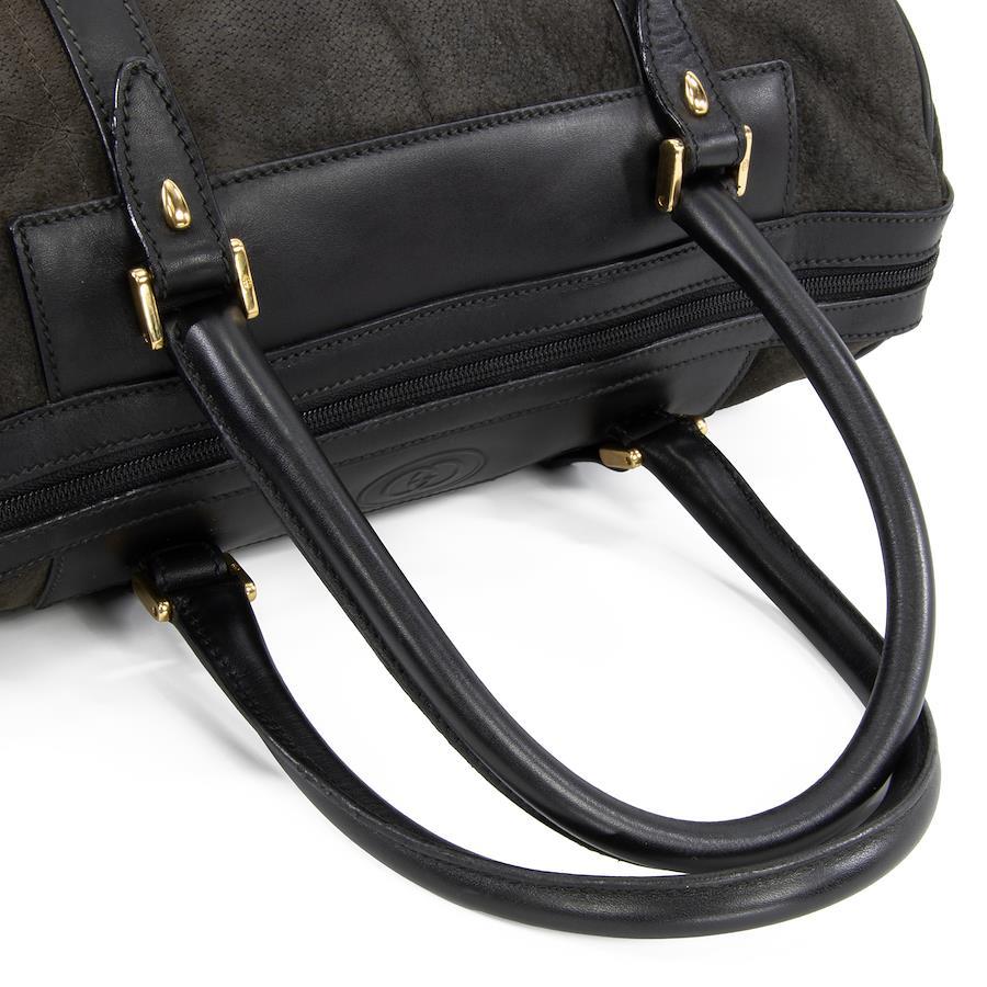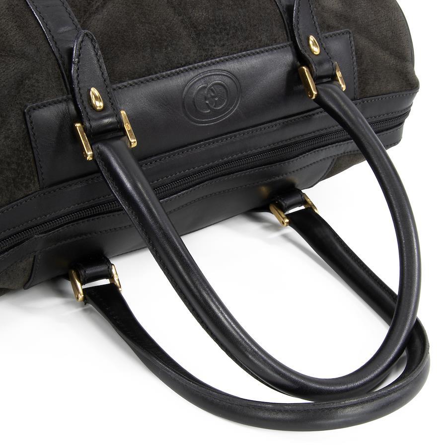 Authentic vintage Gucci handbag/mini Boston bag for men and women in two-tone black and gray calfskin. Rare, vintage design. Freestanding, featuring the GG logo and gold hardware. A819. High-end, stylish bag.