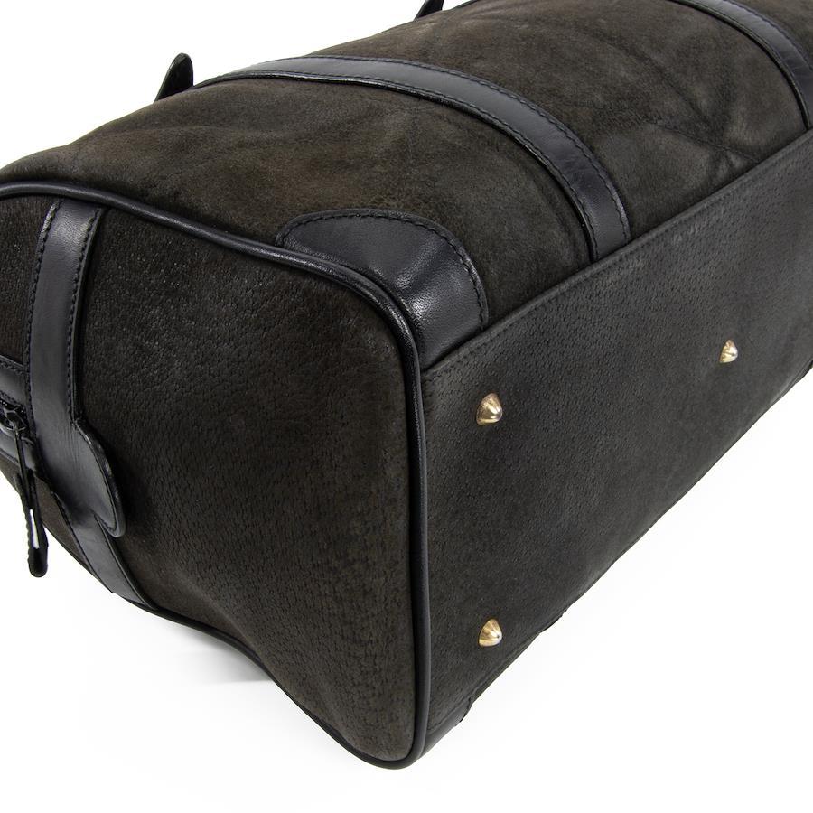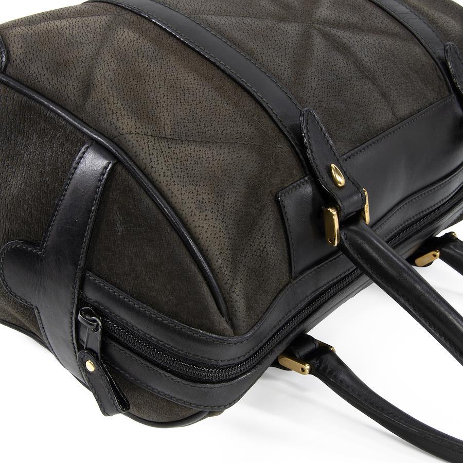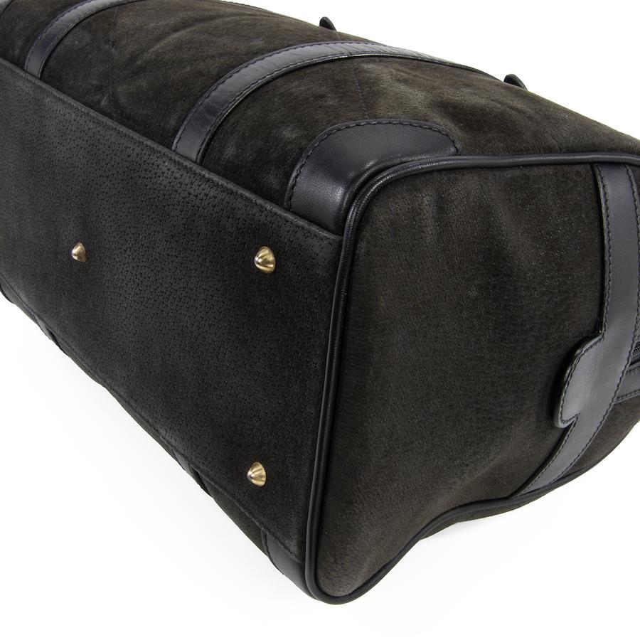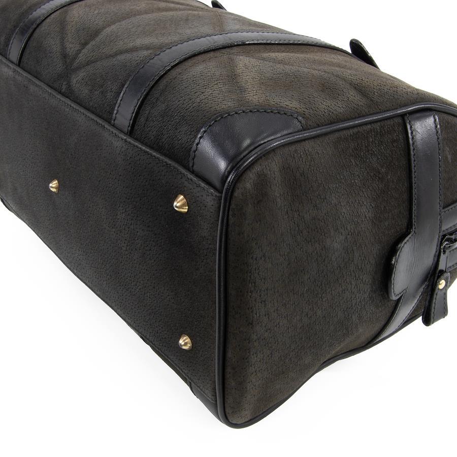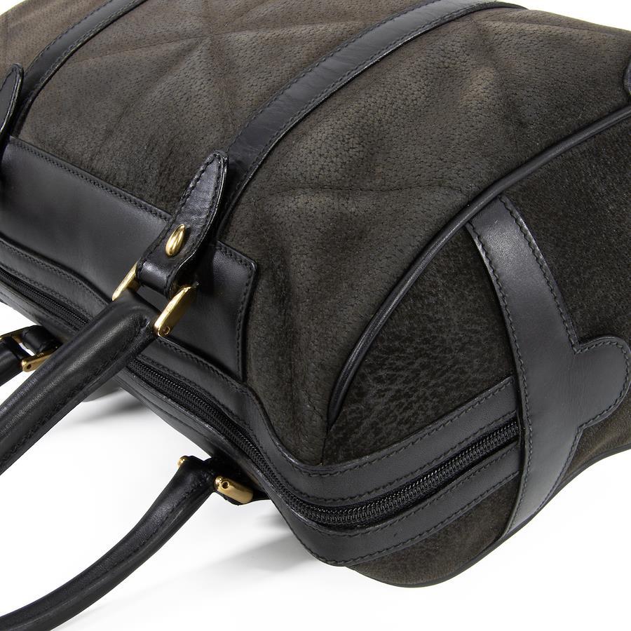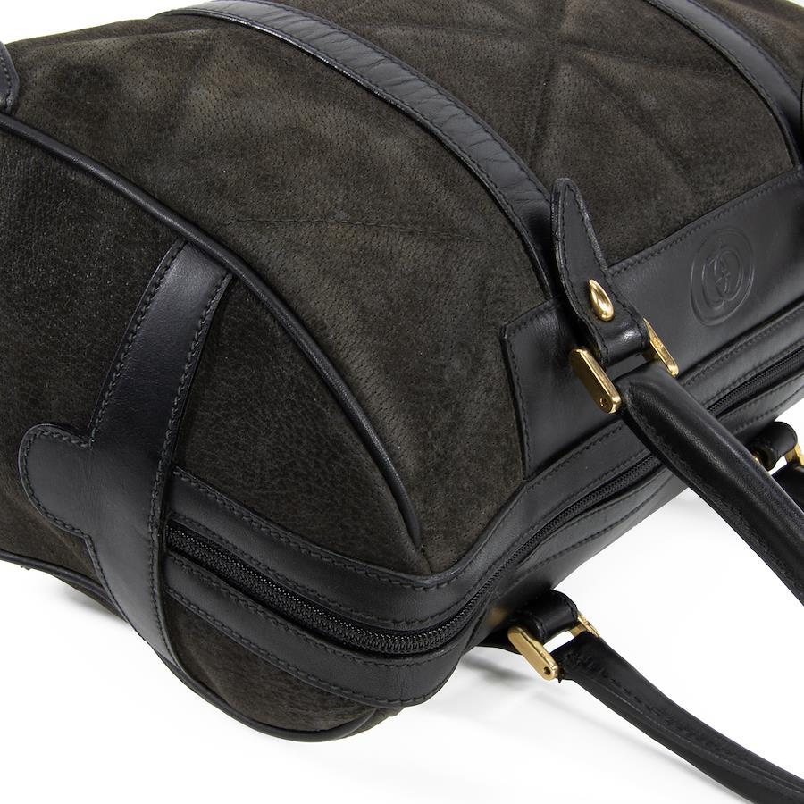 Authentic vintage Gucci handbag/mini Boston bag for men and women in two-tone black and gray calfskin. Rare, vintage design. Freestanding, featuring the GG logo and gold hardware. A819. High-end, stylish bag.