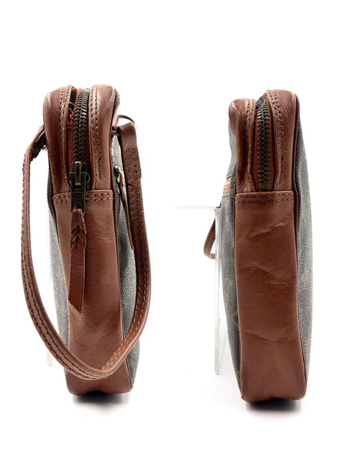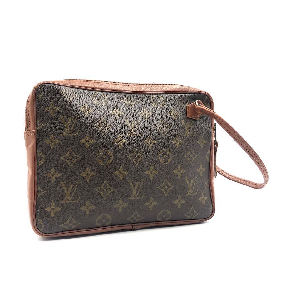 ■商品概要LOUIS VUITTON ルイヴィトンモノグラムサックサポセカンドバッグ クラッチバッグ パーティーバッグPVC×レザー(豚革 ピッグスキン)ブラウンフランス製ECLAIR社ファスナー80年代ヴィンテージ