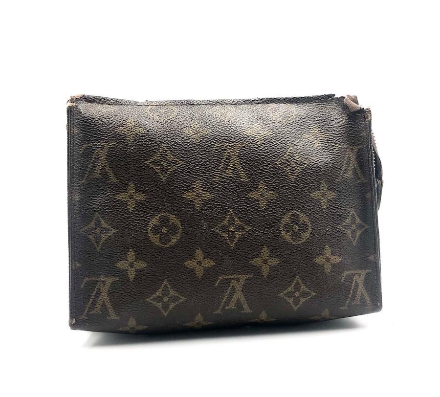 ■商品概要LOUIS VUITTON ルイヴィトンモノグラムポッシュトワレット19コスメポーチ クラッチバッグPVC刻印あり 1982年製ブラウンゴールド金具レディースラグジュアリー 高級 ハイブランド1980年代前半の限られた時期にのみ流通した、珍しいYKKファスナーのポッシュトワレットです。