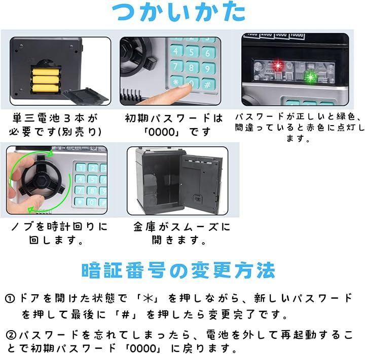 「安心のセキュリティ機能」4桁のパスワードロック機能を搭載しており、高いセキュリティで貯金箱を保護します。