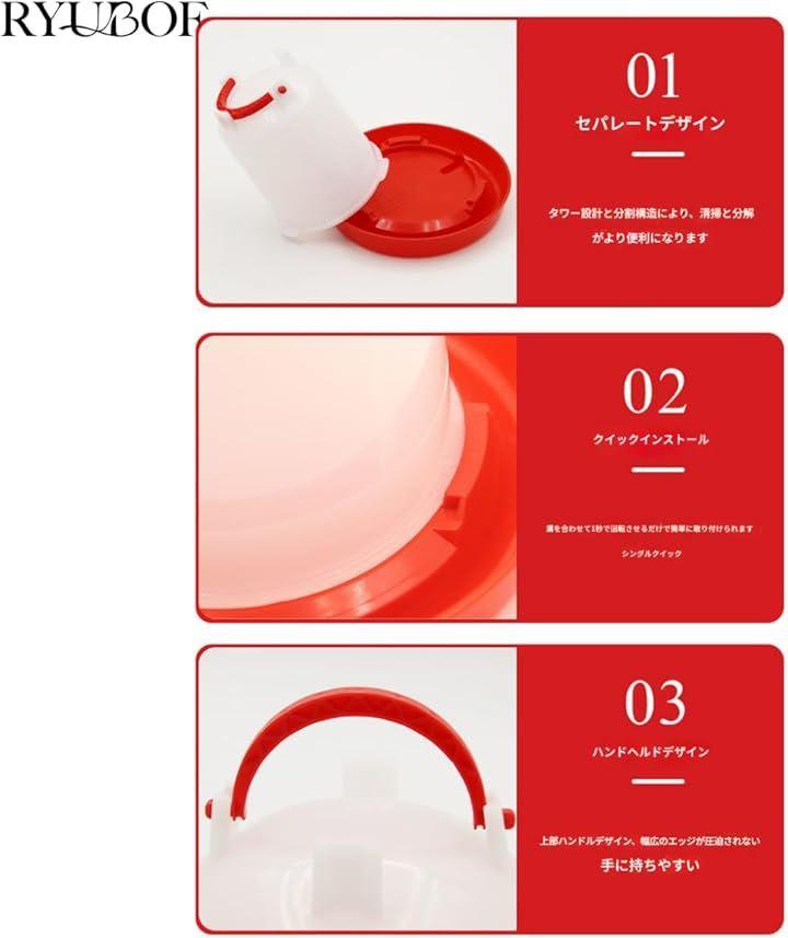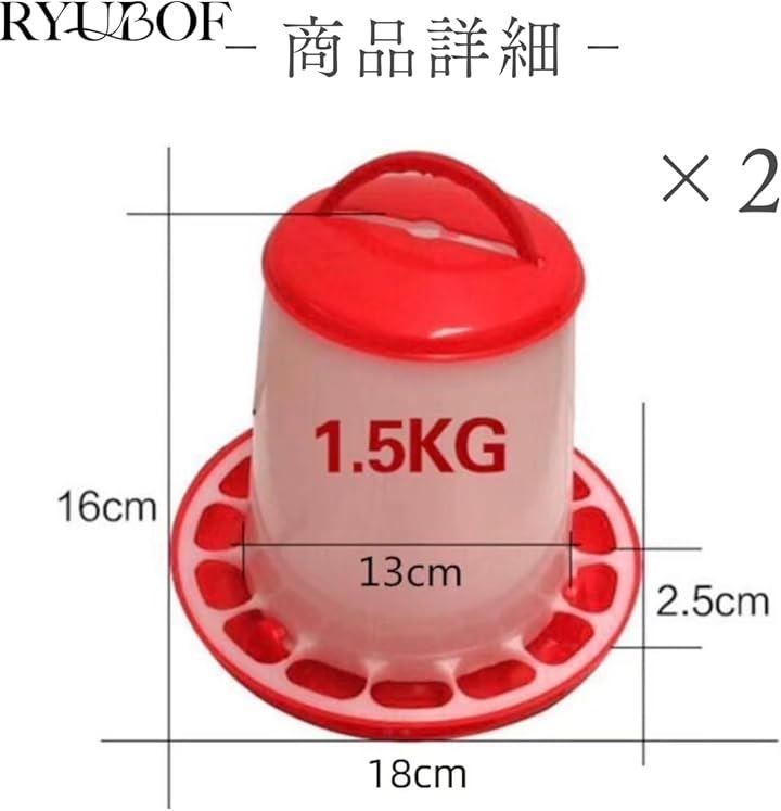 給餌器は約1.5kgの容量で、給水器も軽量かつコンパクトな設計で設置や移動がしやすく、鶏やひよこ、ウズラなどさまざまな鳥の飼育に対応しています。