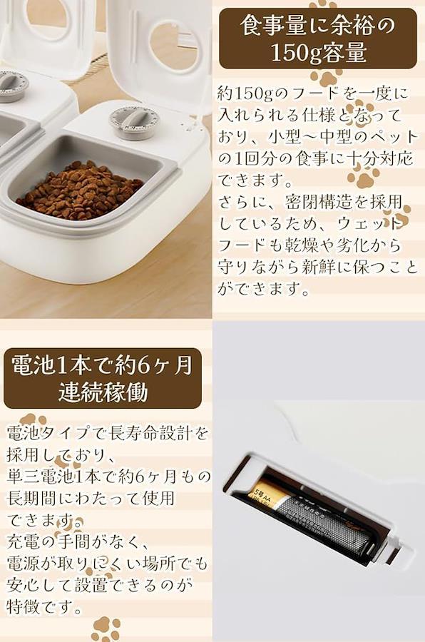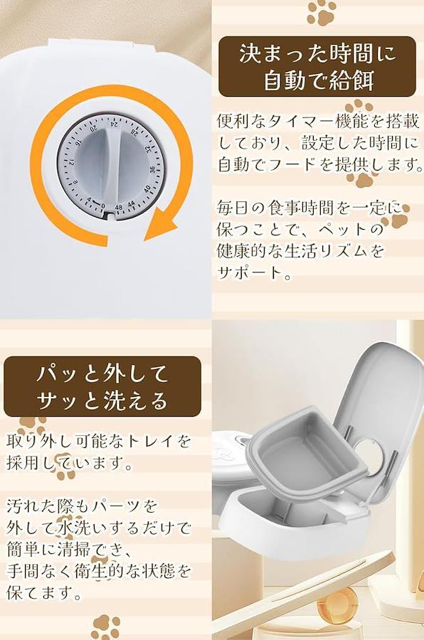 「便利なタイマー機能」設定した時間に自動的に給餌するので、飼い主が不在でも安心です。