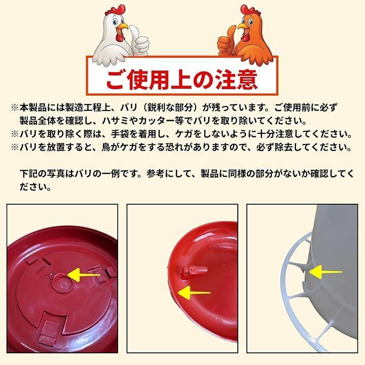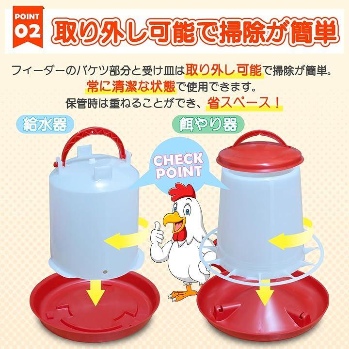 鶉、雛、鶏はもちろん、カモやアヒルなど様々な鳥類のエサやり、水やりに使用可能。