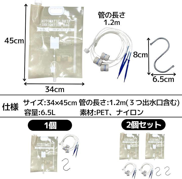 「仕様」サイズ:34x45cm、容量:6.5L 、管の長さ:1.2m、(3つ出水口含む)、素材:PET、ナイロン、数量:1個、付属品:S字フック