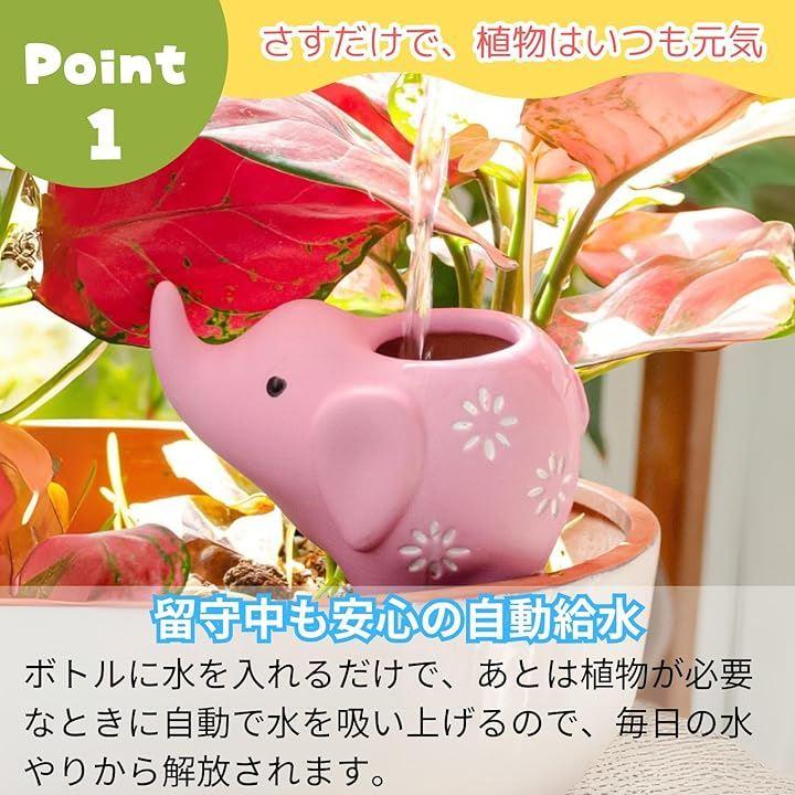 「留守中も安心の自動給水」ボトルに水を入れるだけで、植物の根が乾燥した際に必要な水を自動で供給します。