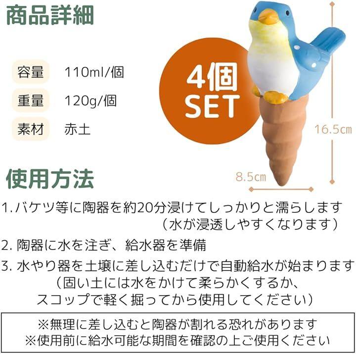可愛い鳥のデザインは、ガーデニングのインテリアにも最適で、忙しい日常や旅行中でも手間なく水やりが可能。